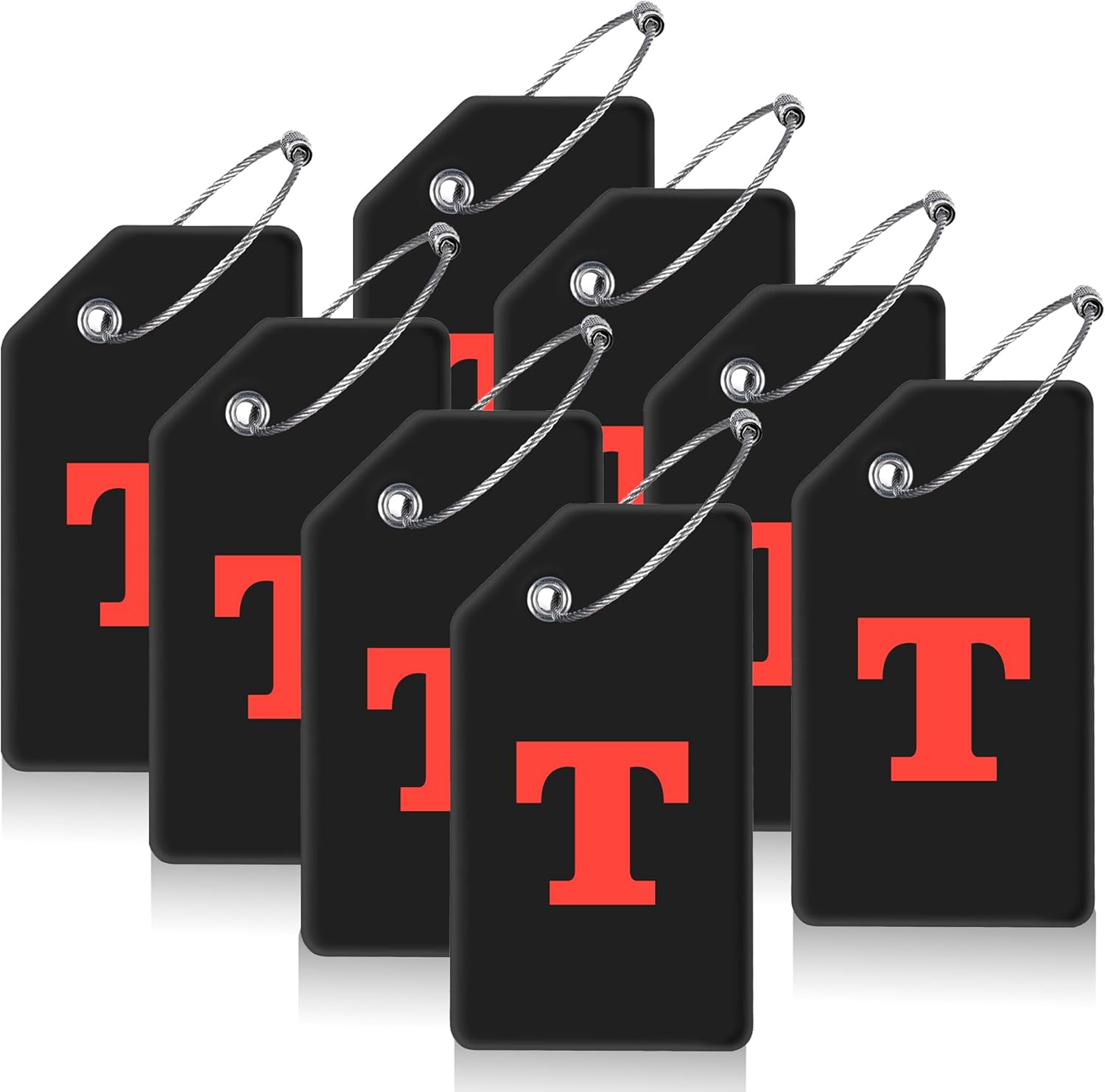 8 Pcs Luggage Tags for Suitcases, 26 Initial Letter Travel Luggage Baggage Identification Labels ID Tags Fully Bendable Tags with Stainless Steel Loop (Letter T, Black)