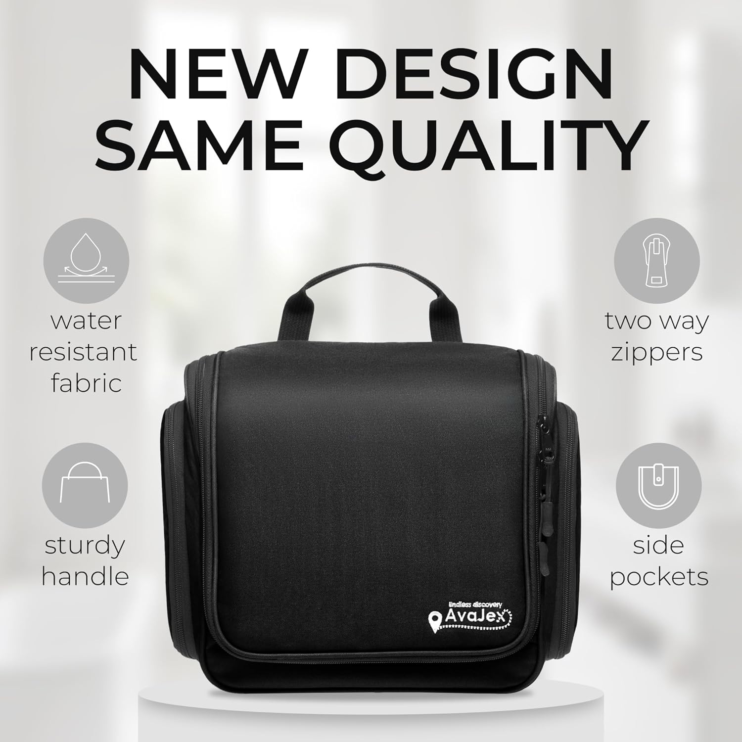 AvaJex Large Hanging Toiletry Organizer - Waterproof Hygiene Bag with Metal XXL Swivel Hook, Sturdy Zippers and 15 Compartments for Toiletries, Makeup, Cosmetics