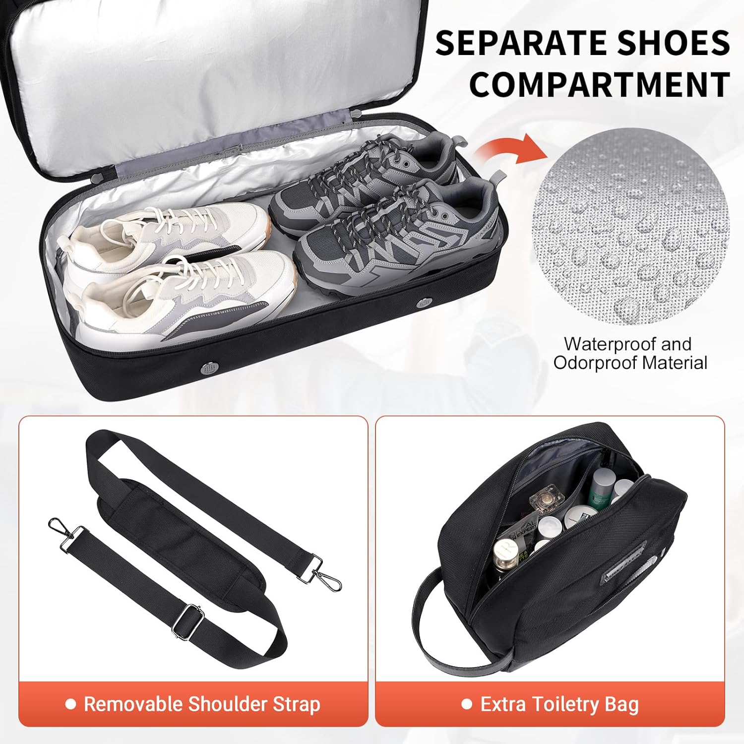 WITZMAN Weekender Bags for Men Women Carry On Duffle Overnight Bag with Toiletry Bag Sets Travel Duffel Bag Shoes Compartment (B694 Black)