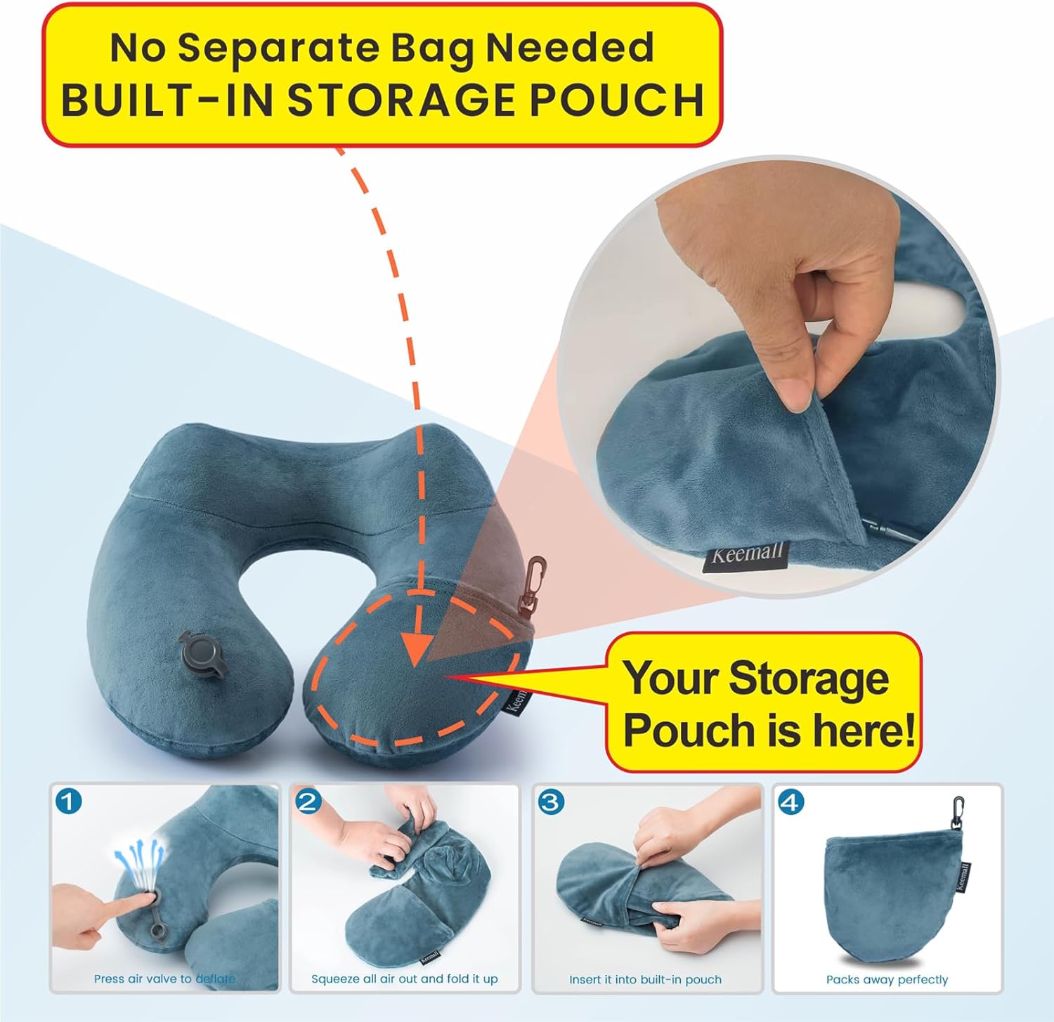 - This travel neck pillow has compact and lightweight design. It can be easily deflated and rolled up to save space in your luggage, making it convenient for travel. With comfy fabric a popular choice for travelers seeking comfort, convenience, and ease of use during their journeys
