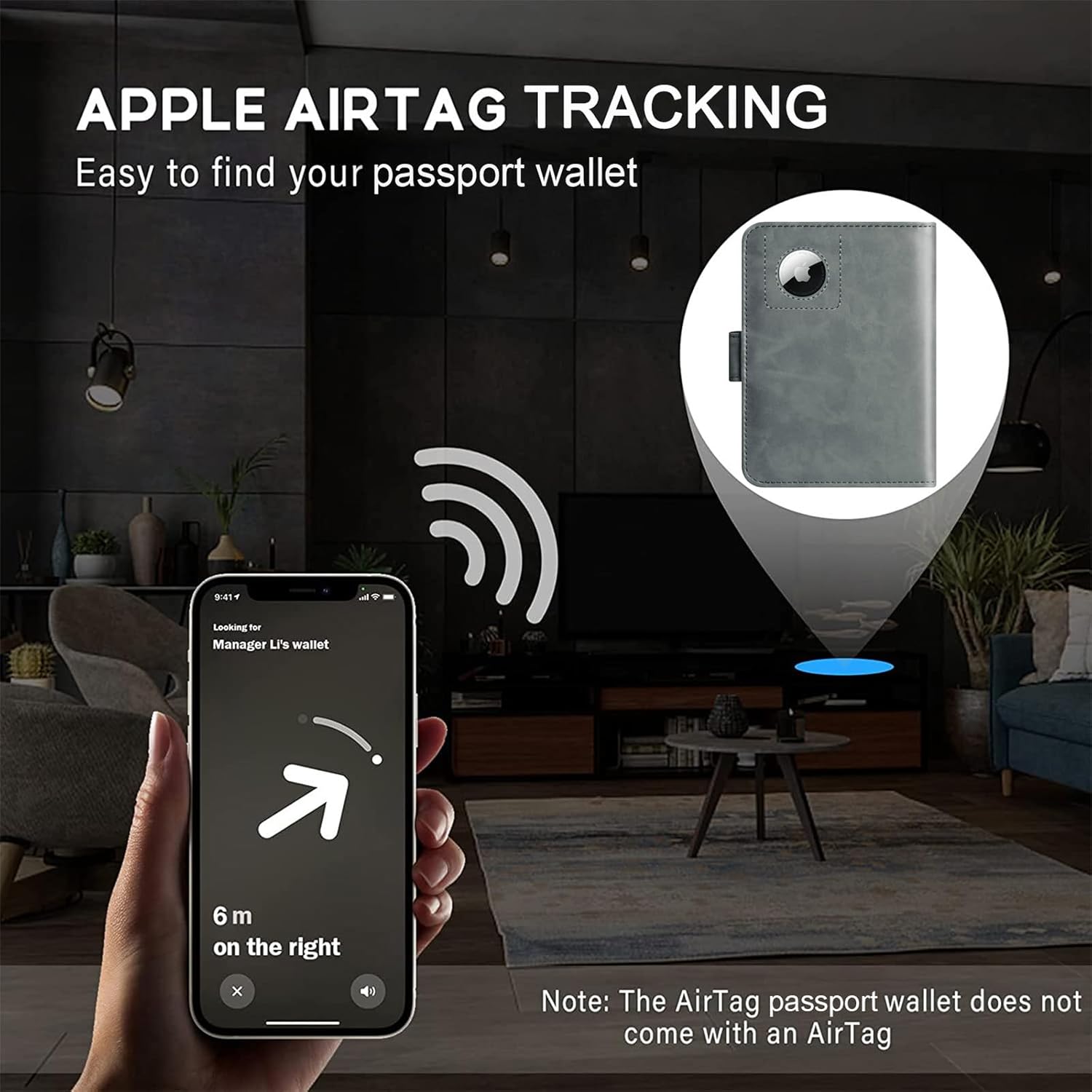 - PASSPORT AND AIRTAG HOLDER COMBO - The built-in holder for Apple Air Tag combine passport wallet and AirTag ideally to make sure you never lose your passport wallet again. Misplaced or lost your passport wallet? Keep track of and see where you last had it alongside friends and devices in the Find My app. The AirTag passport wallet does not come with an Airtag.