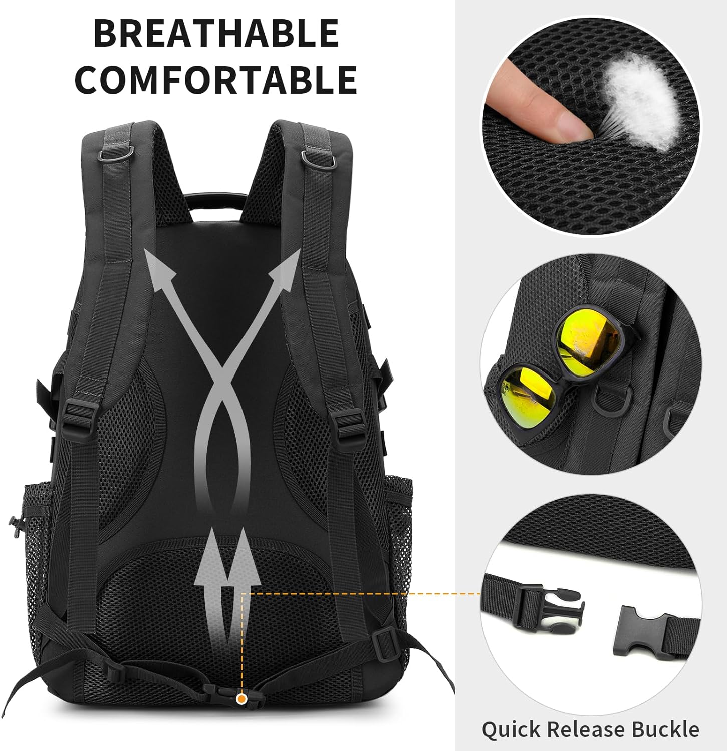 - The shoulder straps of the tactical backpack are thickly padded and comfortable to wear. The back is made of mesh breathable fabric with strong elasticity, which can effectively reduce the burden. Play a good role in shoulder protection, breathable sweat, comfortable.