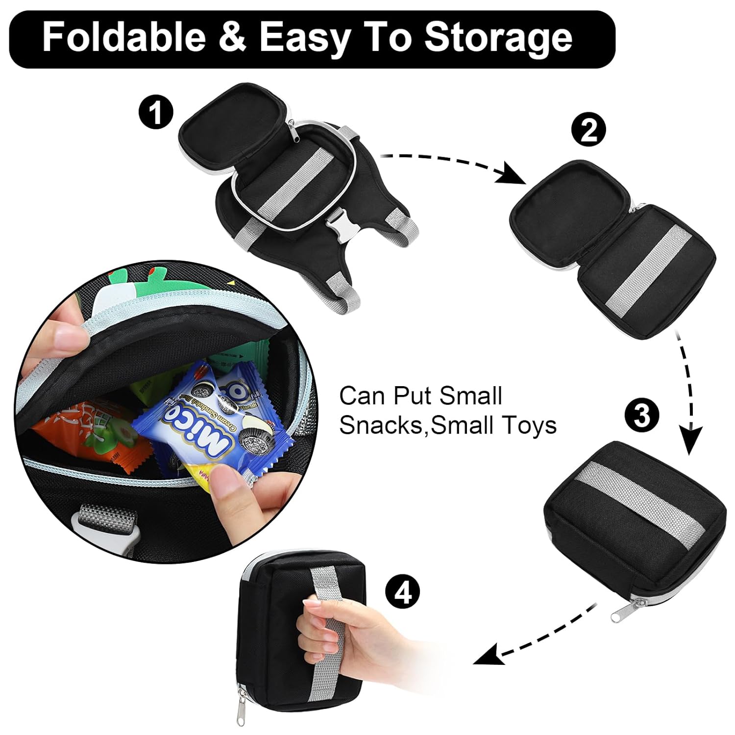 - Foldable & Reflective: There is a small pocket on the back of the harness, you can fold it when you don’t need it, which is very convenient to carry. The wrist link and tether are reflective, making it secure for children to go out at night