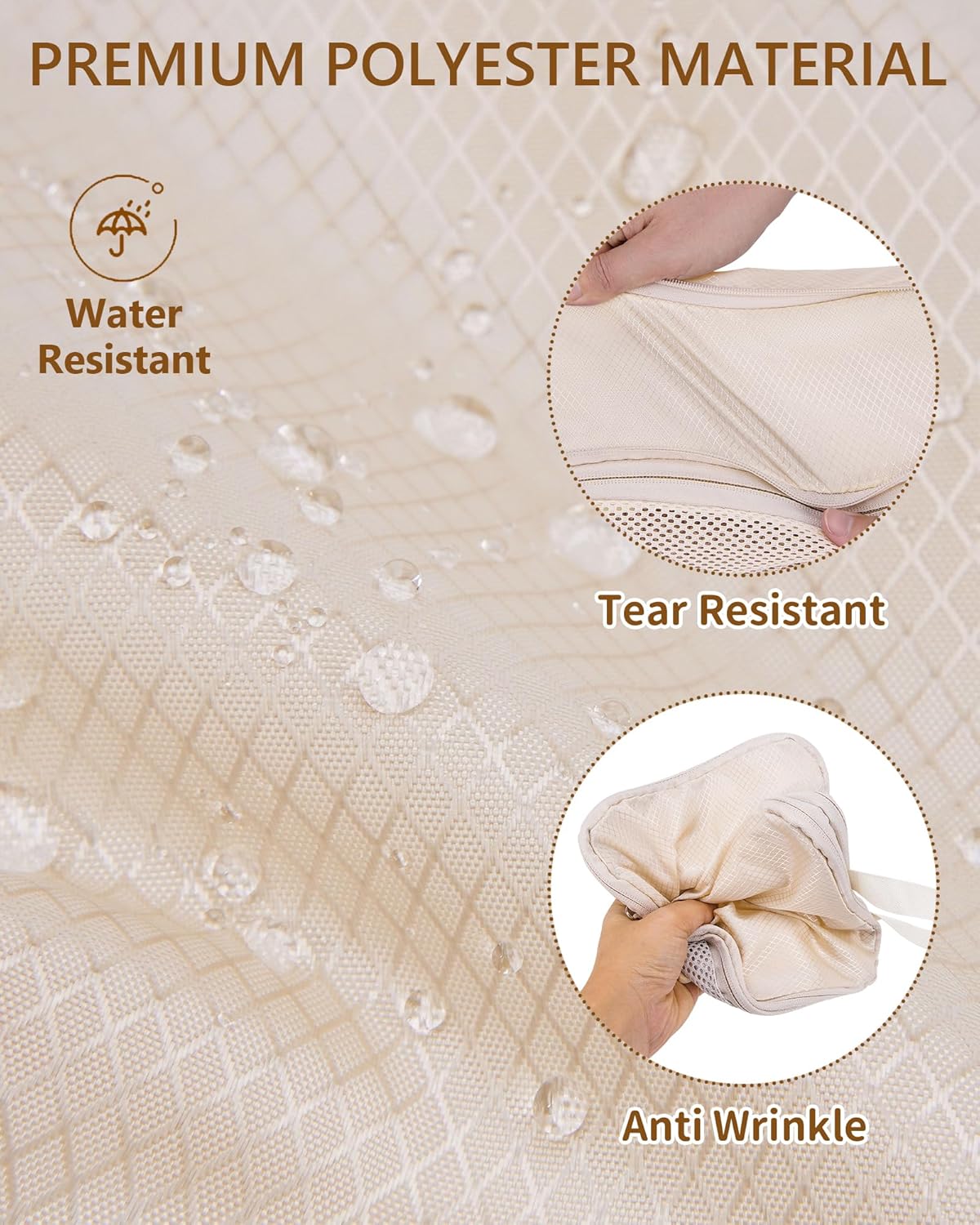 - 【Lightweight, Wrinkle-resistant, and Durable】The tear-resistant mesh is finely woven yet strong, offering both breathability and easy identification of contents. The double zippers are not only smooth but also provide efficient compression capabilities.