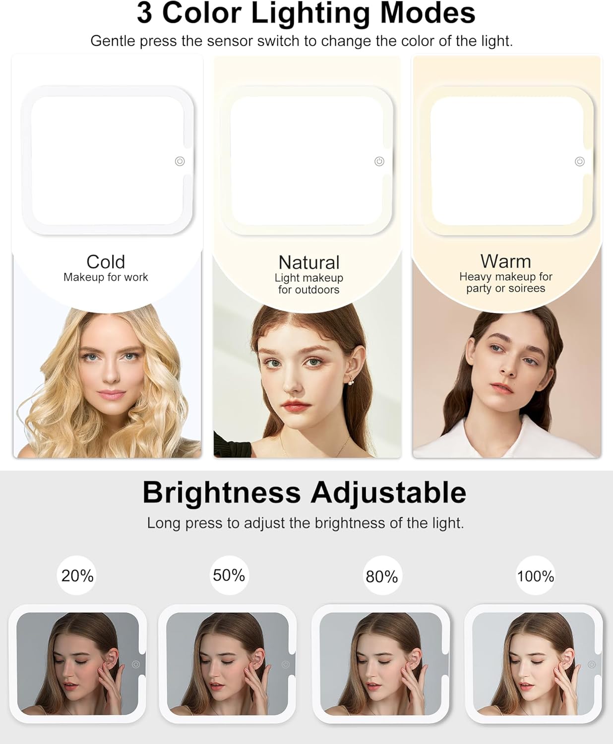 - PROFESSIONAL MAKEUP CASE WITH LED MIRROR: The makeup bag with led mirror with a rechargeable lighted makeup mirror, it has 3 Color Lighting Modes (Cold Light, Natural Light, and Warm Light) & Brightness Adjustment, adaptable to different environments and make-up needs. Must have for makeup artists and makeup lovers.
