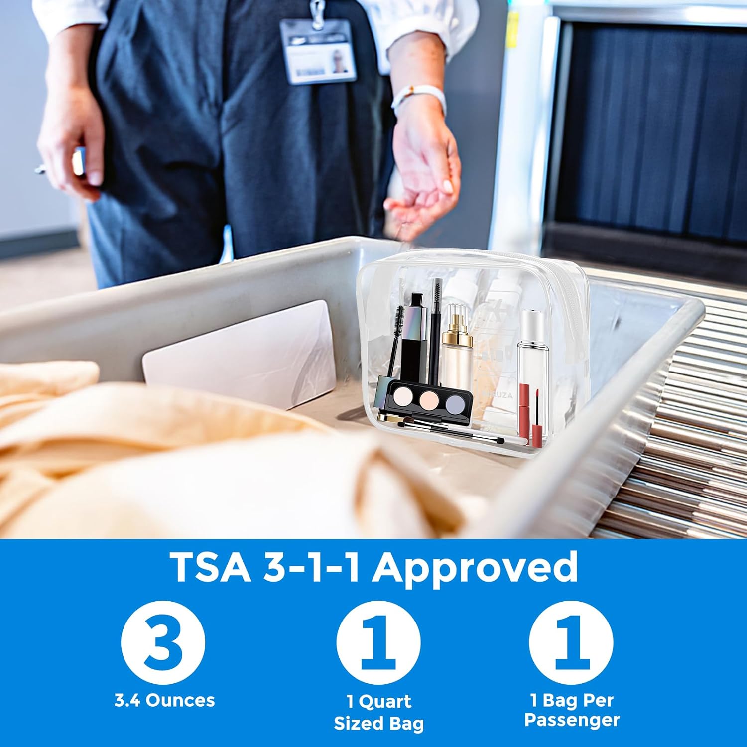 - Smooth Sailing Through Airport Security:Embark on your journey with our TSA-approved travel toiletry bag for women, meticulously crafted to align with 3-1-1 regulations.Say goodbye to security worries, as you breeze through airport checks with our elegant clear bag.