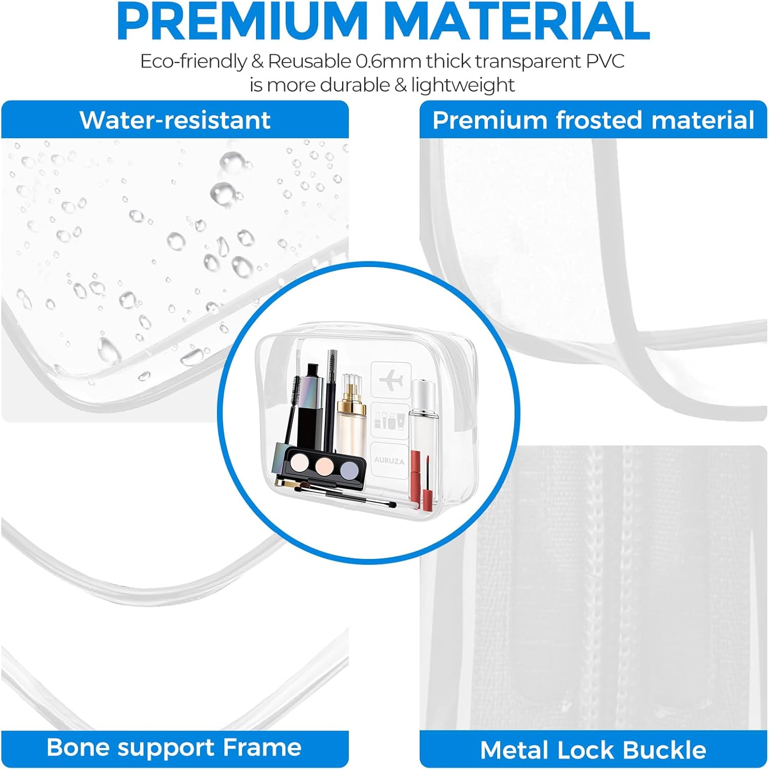AURUZA 2 Pack Travel Toiletry Bag, Clear Makeup Bag, TSA Approved Cosmetic Bag with Zipper, Clear Organizer Carry on Bag for Women, PVC Cosmetic Pouch