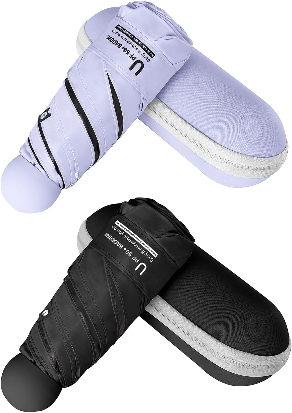 BAODINI Travel Mini Umbrella for Purse With Case Small Compact UV Sun Protection Sun Lightweight Tiny Pocket Umbrella for Women Kids and Men