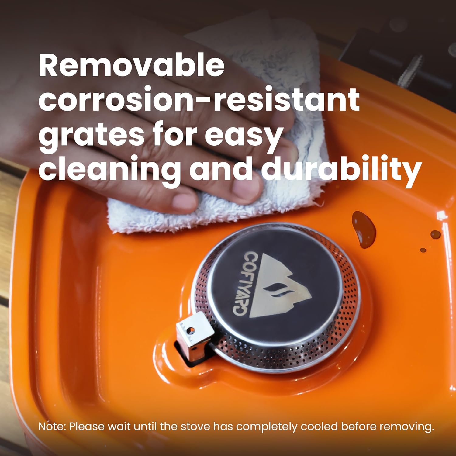 - Built to Last: The folding camp stove features a high-temperature-resistant steel body, ensuring it is robust and long-lasting. The stainless steel burners are corrosion resistant. Please note: It is normal for the burners to oxidize and turn black after high temperature cooking