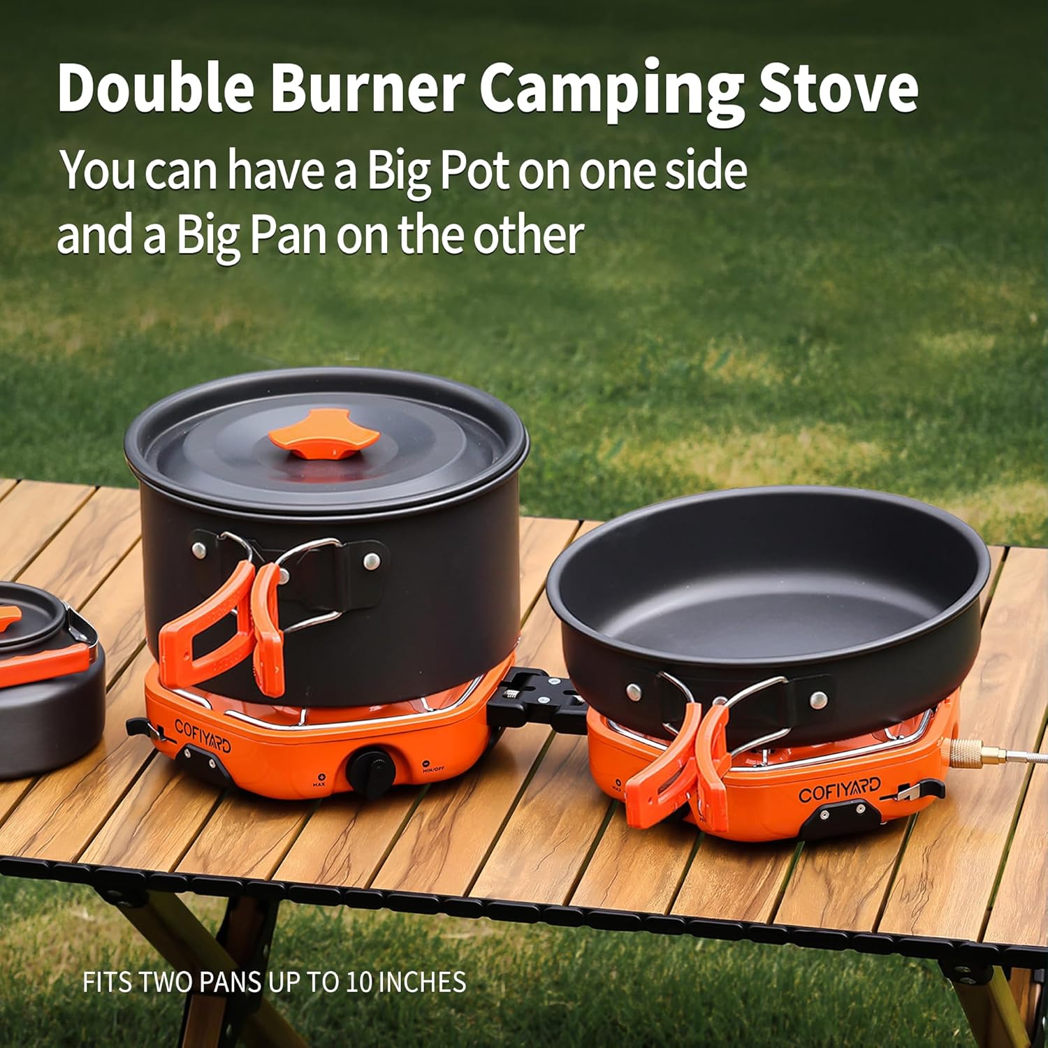 - In The Package: Includes 1 x COFIYARD Camping Gas Stove with 2 Burners (Folding), 1 x COFIYARD Gas Stove Connector, 1 x COFIYARD Woven Carry Bag, 1 x User Manual. 1-Year and 24/ 7 Customer Support