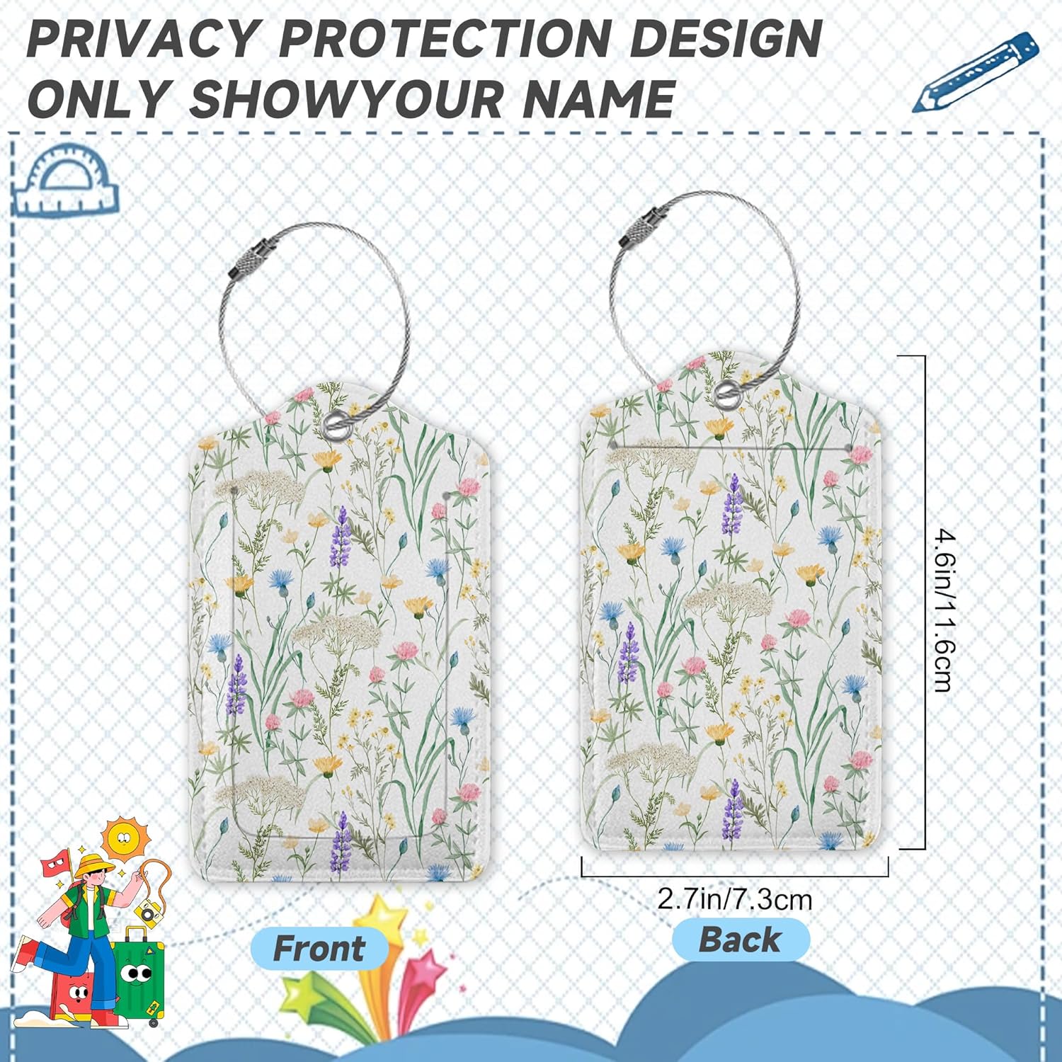 - [Fashionable and Unique] With trendy and adorable patterns, these luggage tags are a stylish accessory that adds flair to your travel essentials. Choose from a diverse selection of designs to showcase your personal style and make a statement wherever you go.