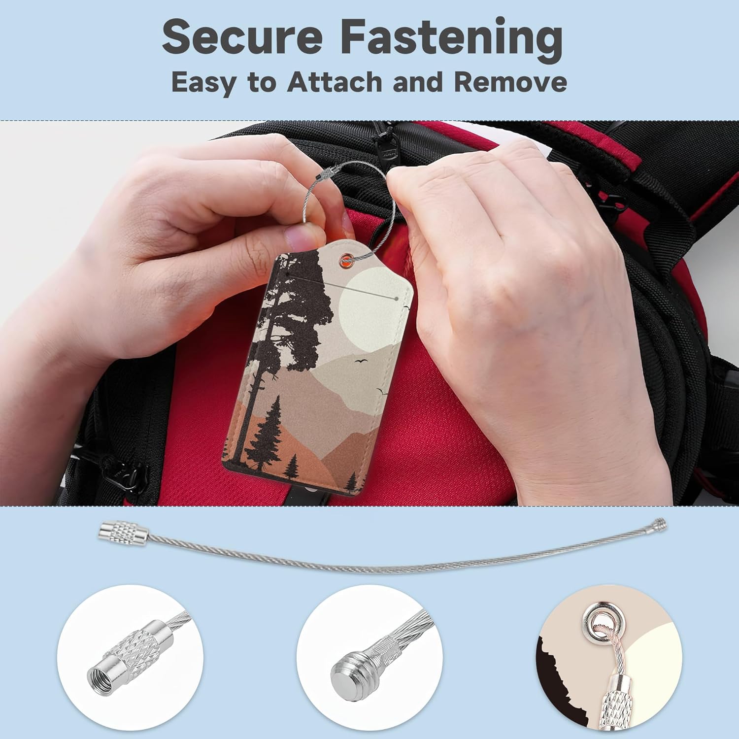 - [ Practical] Crafted from premium PU leather, these luggage tags boast exceptional sturdiness and resistance to deformation. The detachable steel loops enable effortless attachment and removal from your bags, ensuring a secure fit that won't come loose or tear.