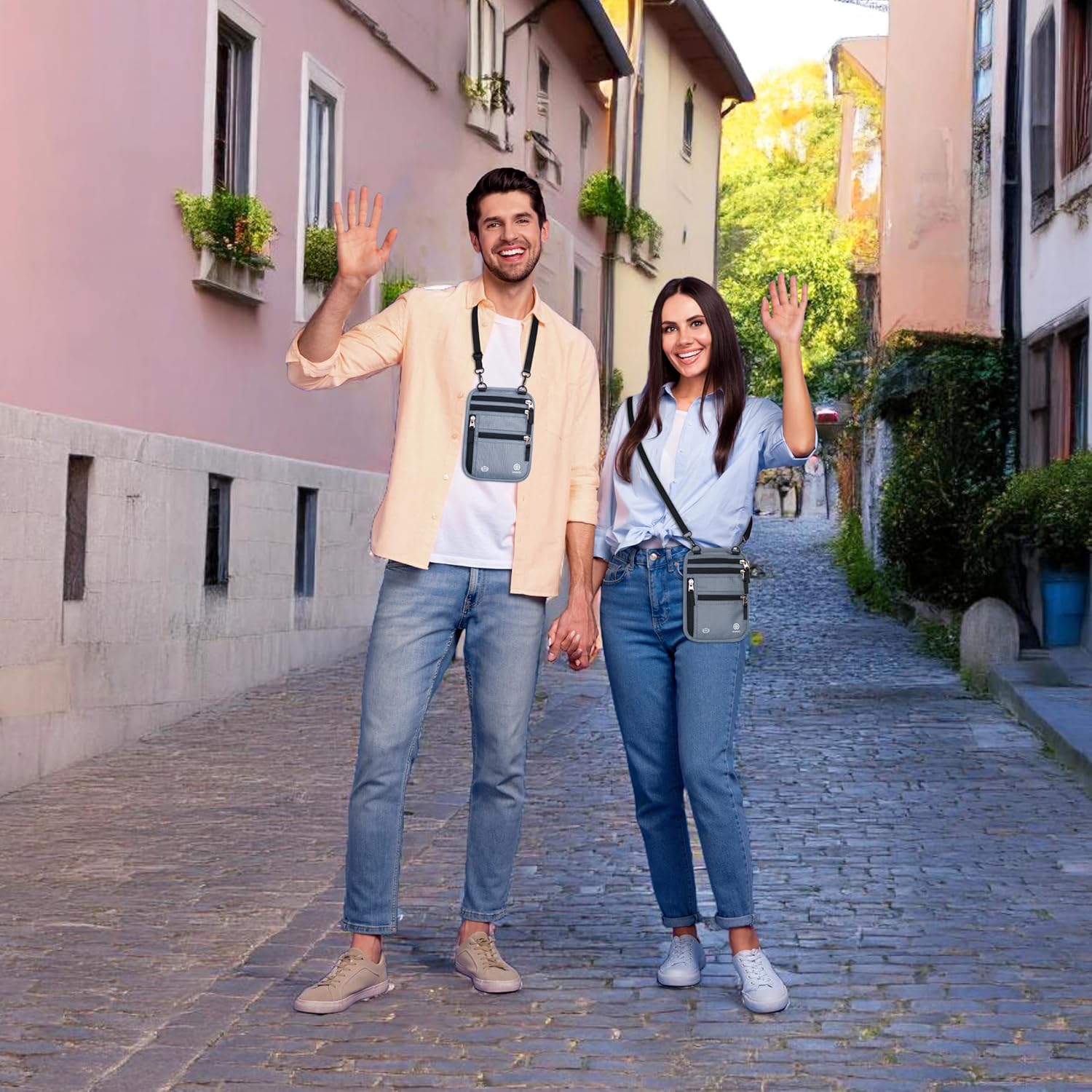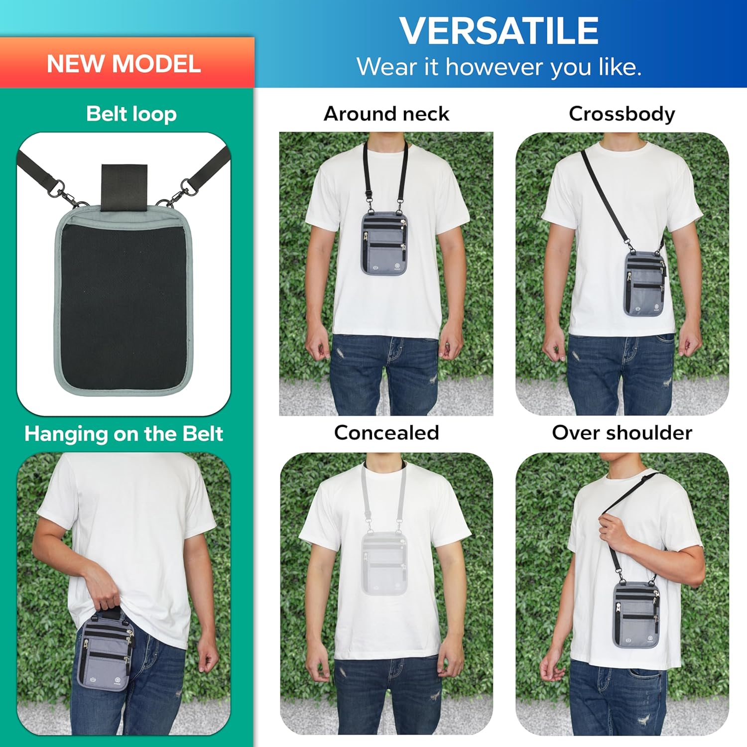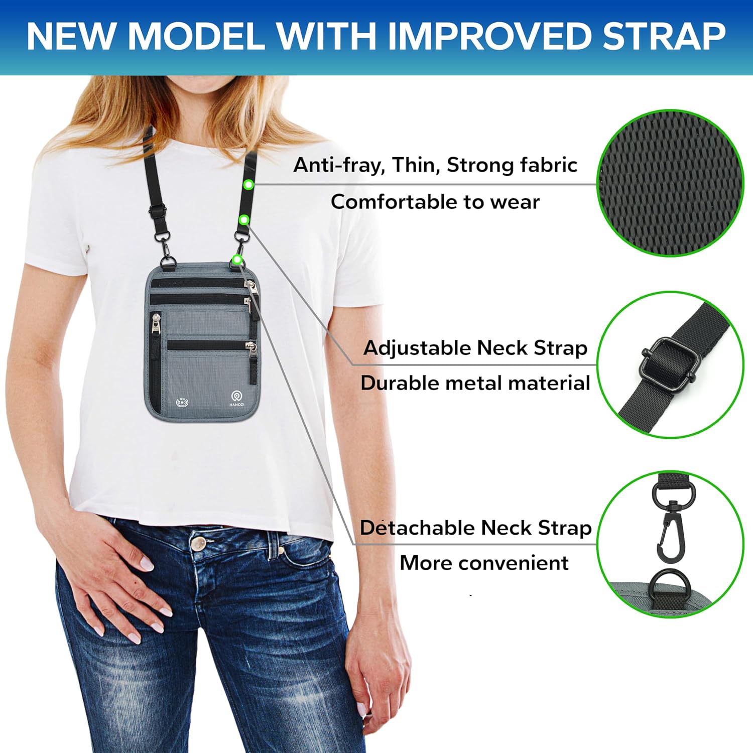 Neck Wallet – Travel Pouch and RFID Blocking Passport Holder for Women and Men, Slim Travel Wallet (Smoke Grey)