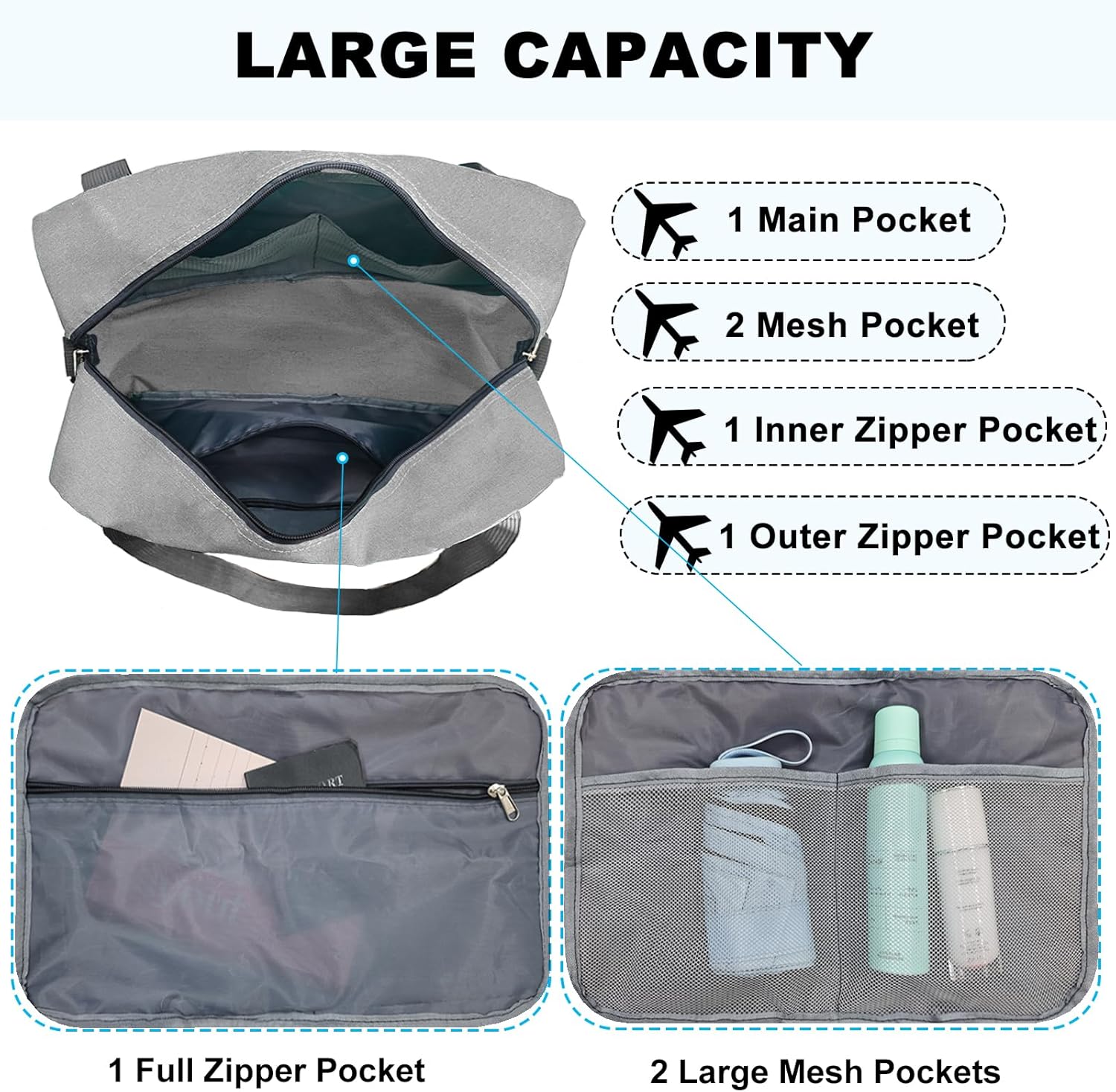 Foldable Carry on Luggage Bag 22x14x9 Personal Item Bag for Airplanes Travel Duffel Bag for Women and Men (40L, Dark Grey)