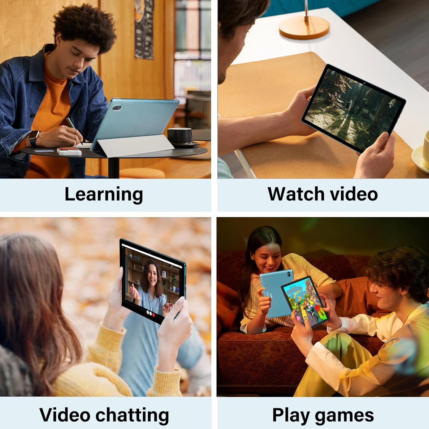 - 【18GB RAM + 128GB ROM + 1TB Expansion】Android 14 tablet has 4GB RAM, which can be expanded up to 18GB in the settings. Whether you are playing a game or working on a task, the 10.1 tablet delivers a smooth experience. Equipped with 128GB ROM and MicroSD card slot (expandable to 1TB), you can store more of your favorite apps and content. (Not support add SIM card! !!)The 10 inch android tablet has a built-in 6000mAh battery up to 8 hours of usage, perfect for your daily commute, travel, and on-the-go entertainment needs.
