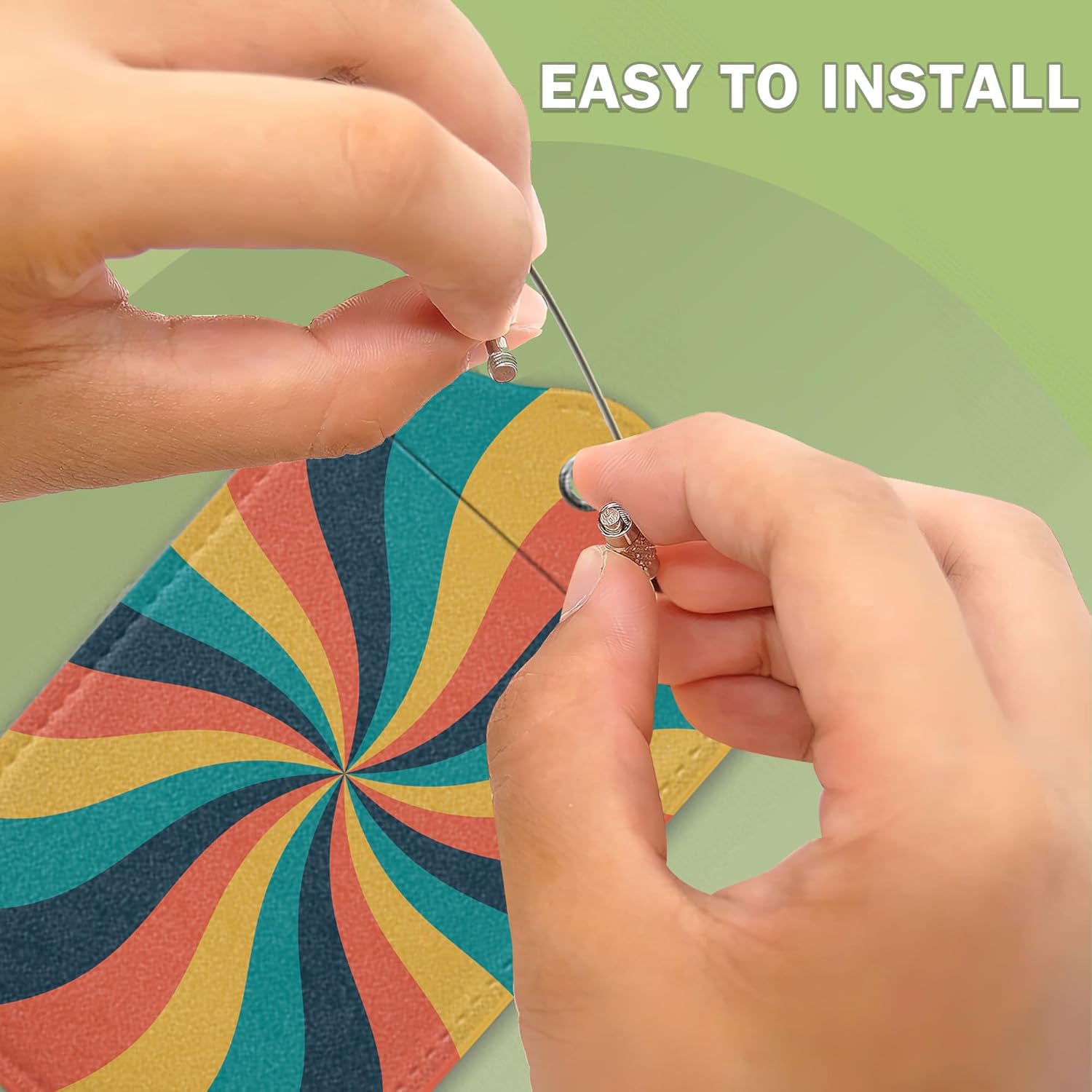 2 Pcs 70s Retro Wavy Luggage Tags,Cruise Vintage Twisted Ray Luggage Tag with Privacy Flap,Name Id Label and Steel Loop for Women Men Travel Bag Suitcase