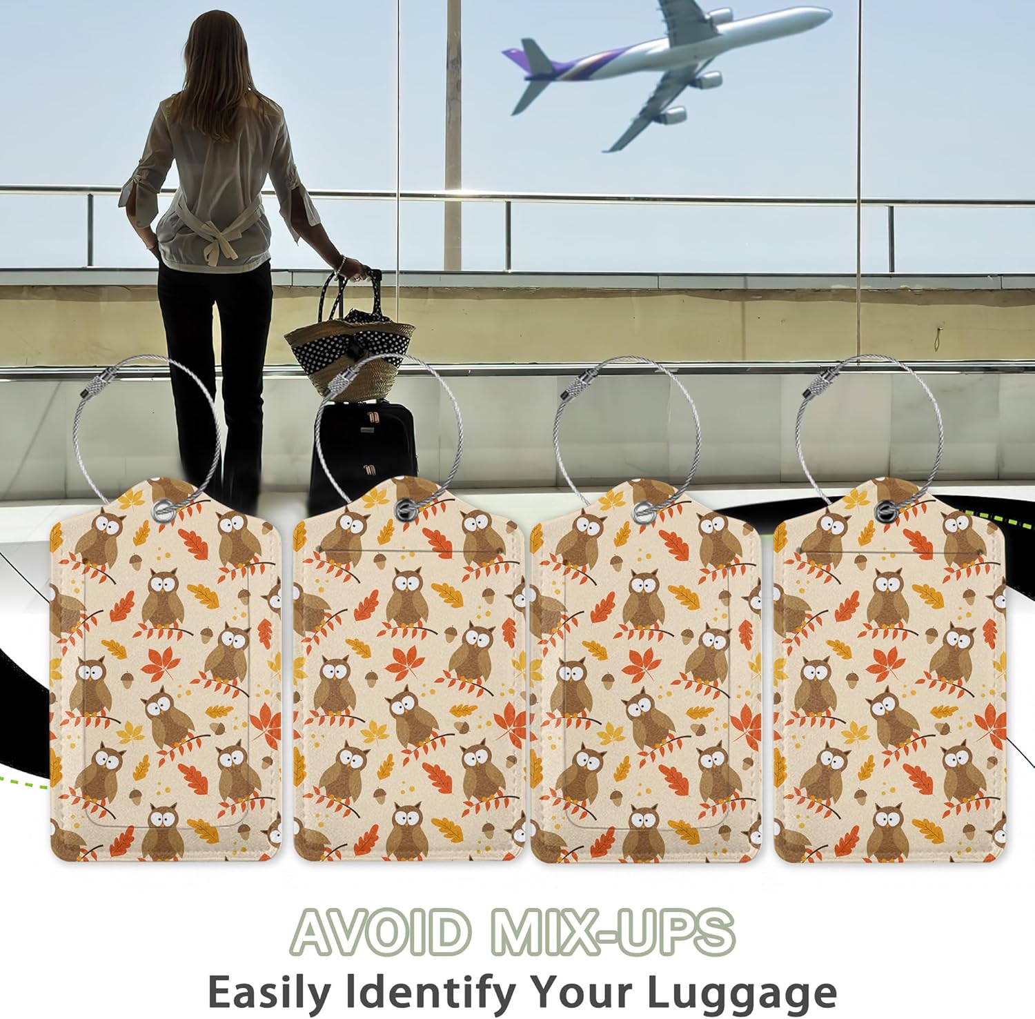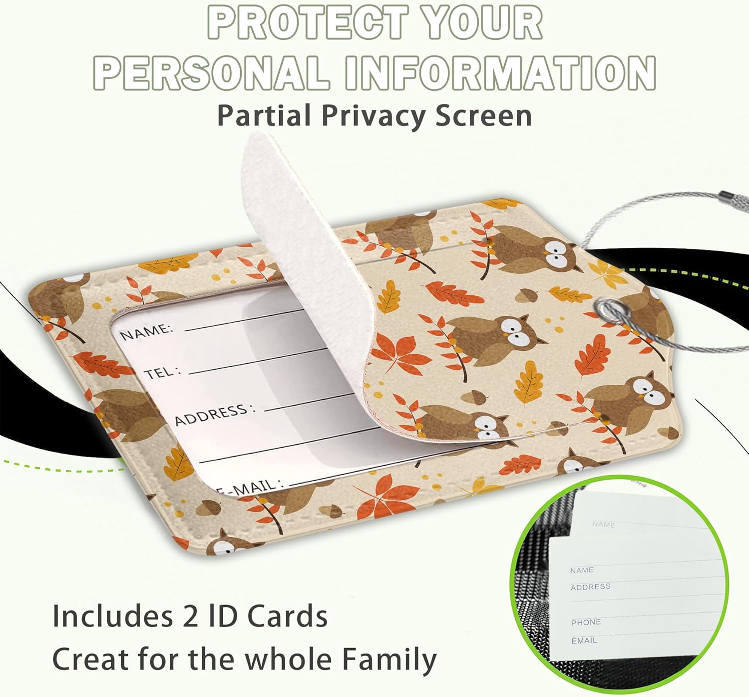2 Pack Luggage Tags for Suitcase,Autumnal Leaves and Owl Bird Leather Luggage Tag Bag Tags Identifiers Privacy Cover Id Label with Steel Loop for Women Men Girls Boys Travel