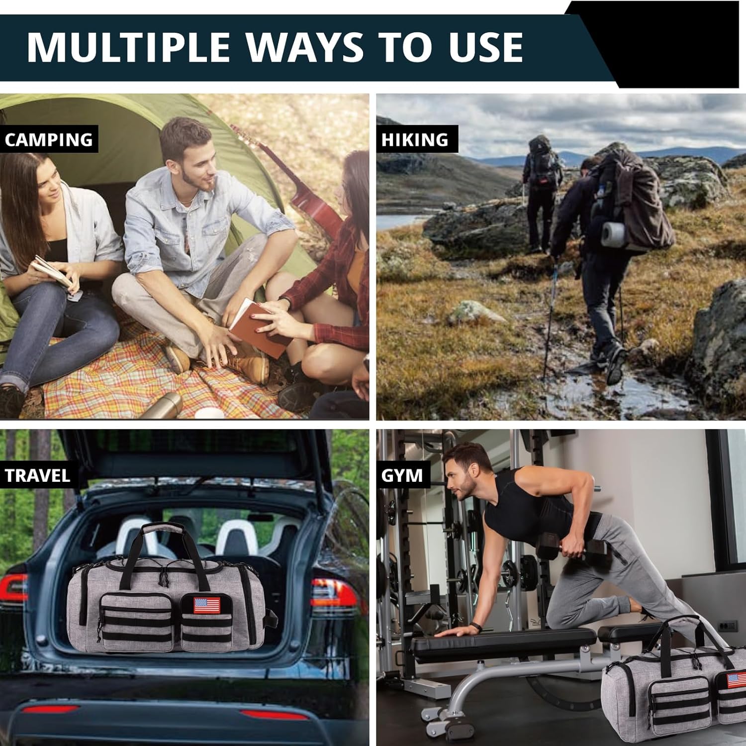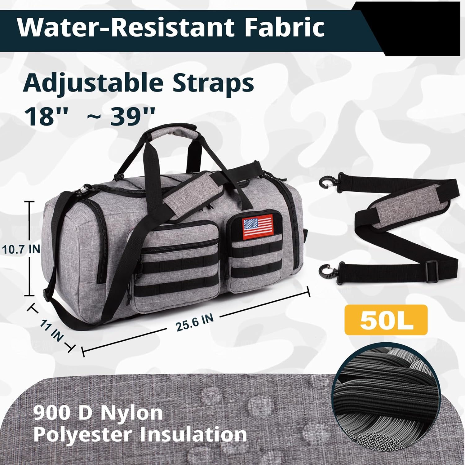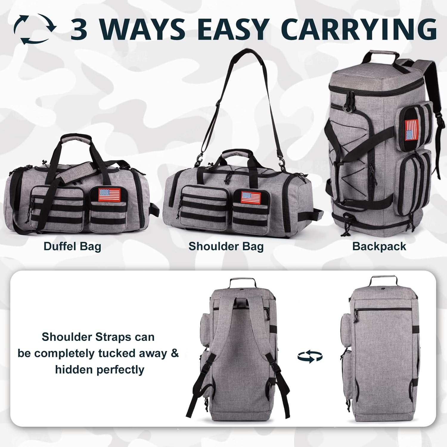 Tactical Gym Bag for Men,50L Large 3 in 1 Sports Duffle Bag with Shoes Compartment for Travel,Water Resistant Travel Backpack Weekender Overnight Bag with Wet Pocket for Women