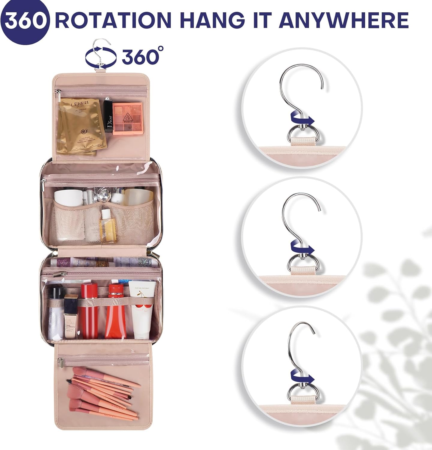 - 【Hanging Design & Space-Saving】Hanging Toiletry Bag with 360° Rotating Hook – Easily hang this travel cosmetic organizer on any towel rack, door, or shower rod to free up counter space in cramped hotel bathrooms or gym lockers. Perfect for quick access to toiletries.