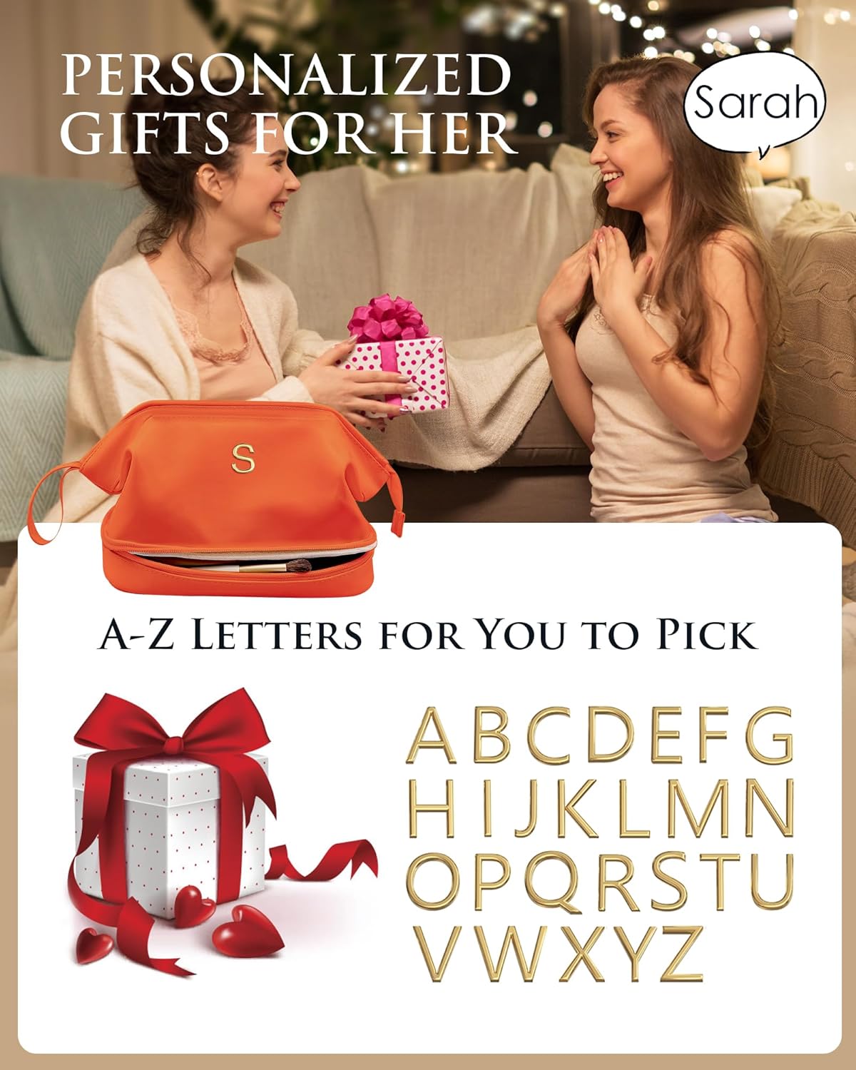 Birthday Gifts for 10 11 12 13 14 15 16 Year Old Girls-Makeup Bags, Personalized Double Layer Cosmetic Bag with Makeup Brush Organizer, Grandma Birthday Gifts, Gifts for Women Friends