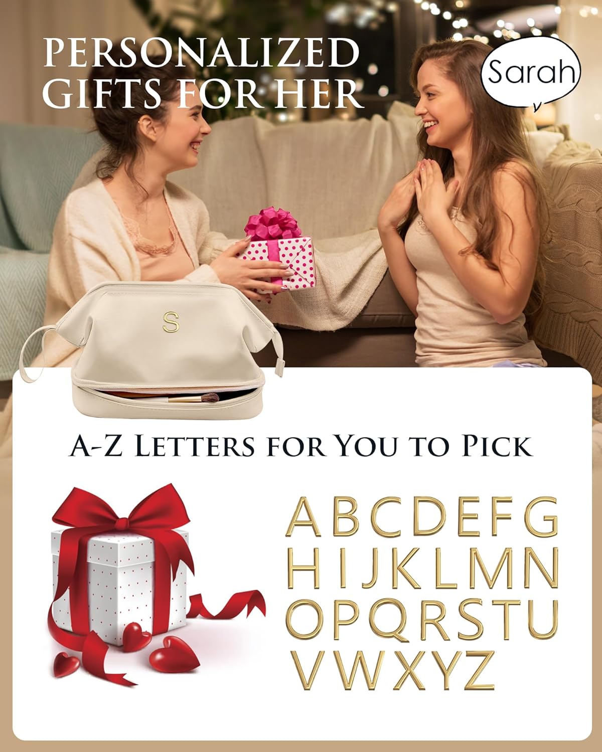 Birthday Gifts for 14 15 16 17 18 19 Year Old Girls, Initial Large Makeup Bags, Personalized Double Layer Cosmetic Bag with Makeup Brush Organizer,Gifts for Women Girlfriend Friends Female