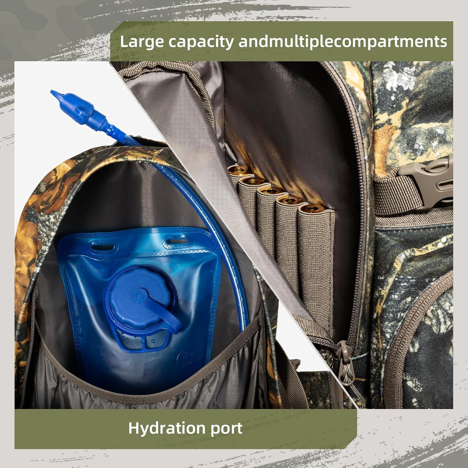 - 【Excellent Quality】The backpack is made of high-quality tear resistant fabric with a silent camouflage design that effectively reduces noise and enhances stealth.Meticulous sewing techniques and high quality zippers ensure durability and effectively protect your equipment.