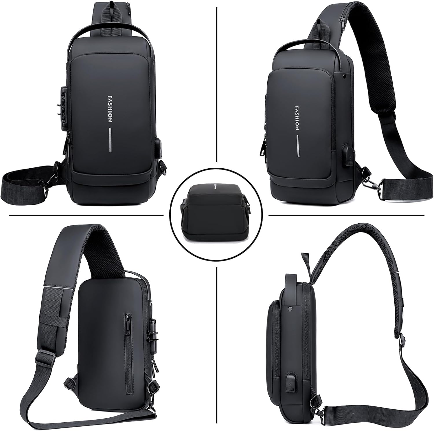 Sling Bag for Men Anti-theft USB Crossbody Shoulder Backpack Purse Waterproof PU Leather Chest Bag Travel Daily Use
