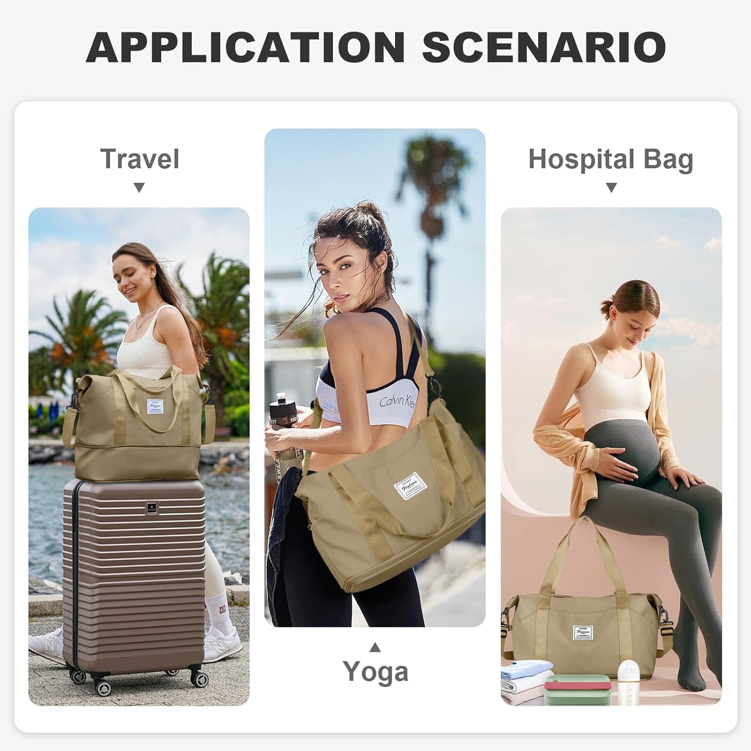 Travel Duffel Bag, Sports Tote Gym Bag, Shoulder Weekender Overnight Bag for Women
