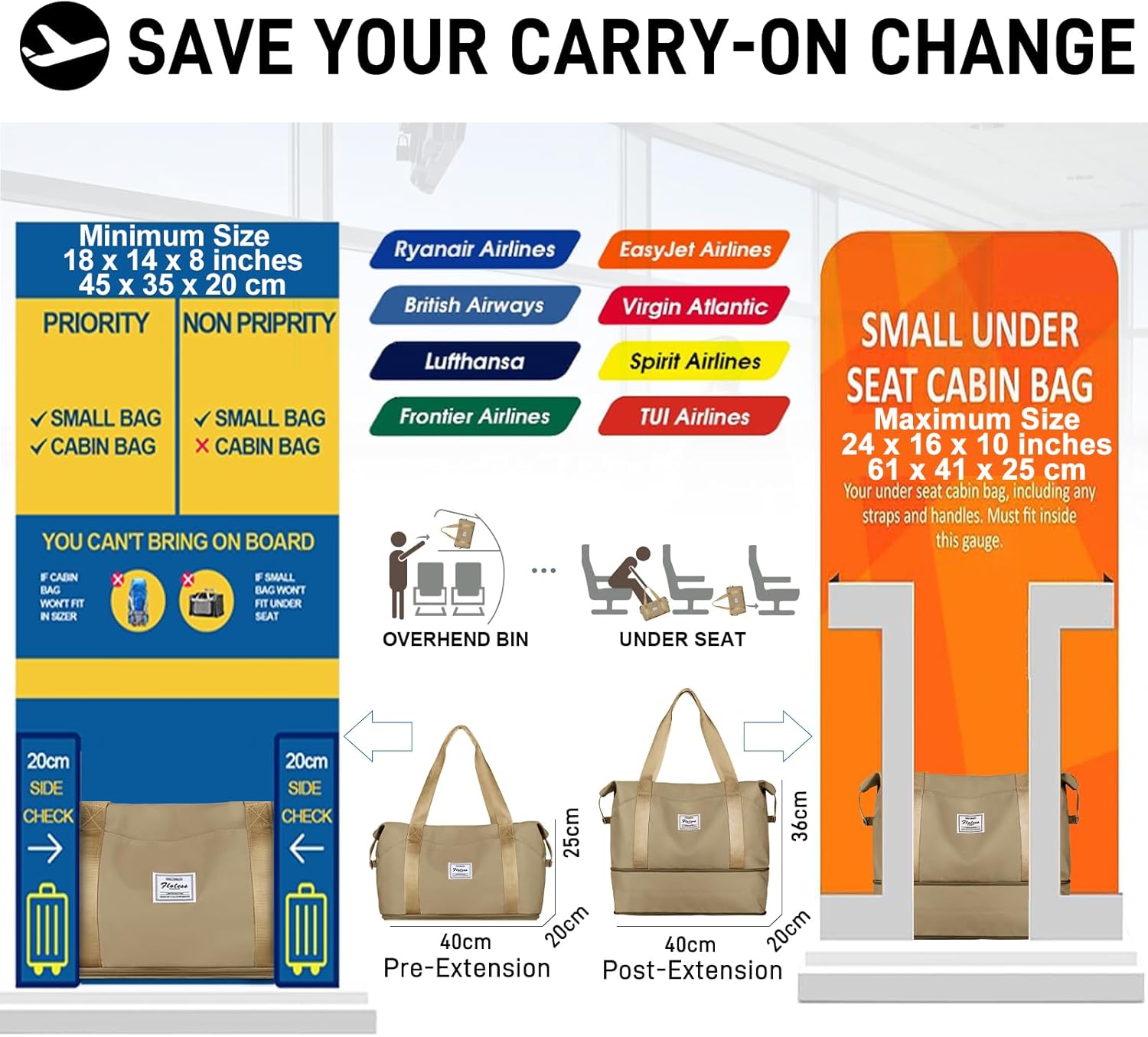 - āļø Avoid Carry-On Fees - This backpack,measuring 18 x 13 x 6.3 inches, fits within the personal item size limits of Spirit Airlines and Frontier (18 x 14 x 8 inches). This bag can be placed under the seat, so there's no need to pay for a carry-on.