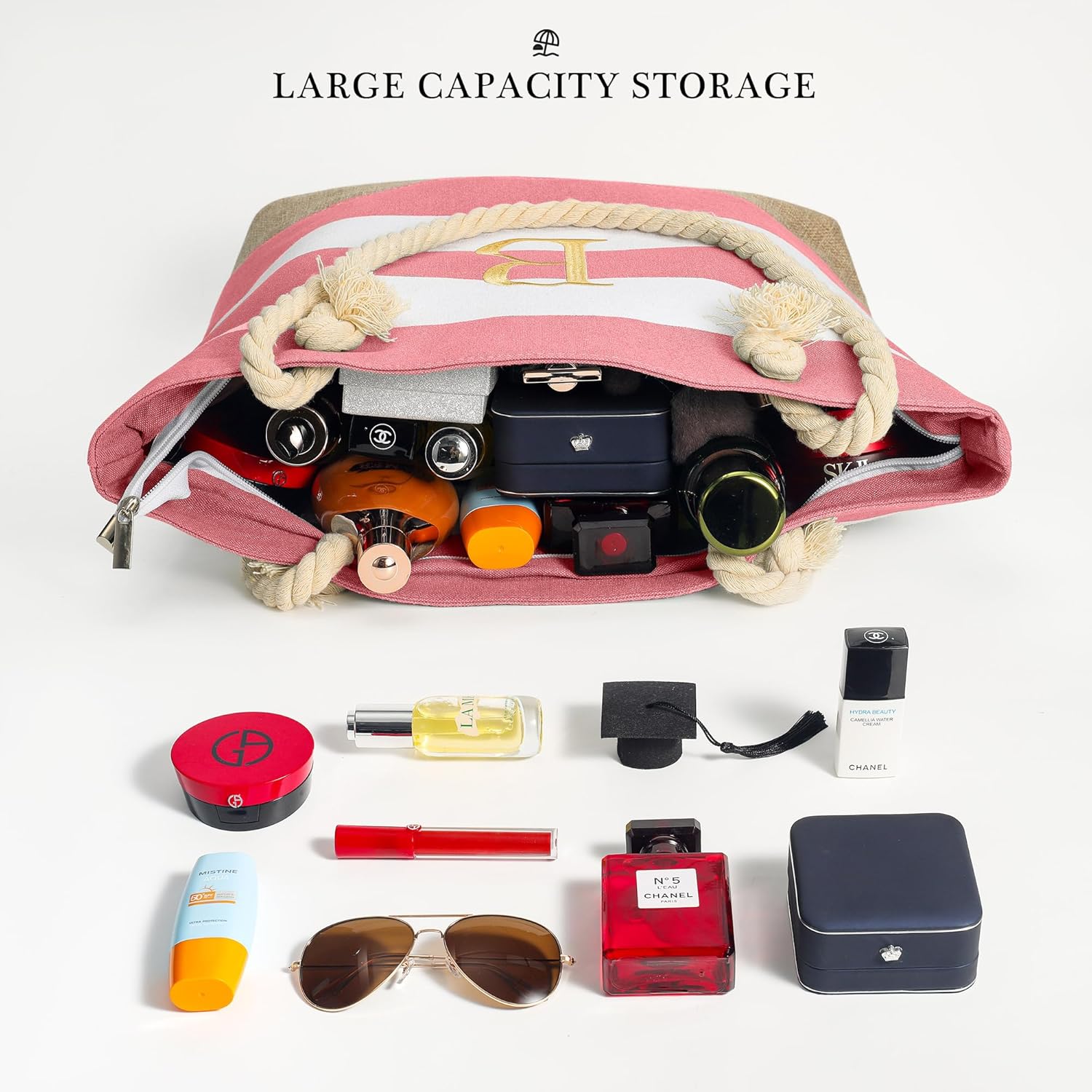 • 【Personalized Gifts and Unique Initial】The classic embroidered initial and high density monogram, makes the canvas beach tote bag is suitable for wedding, Valentine's Day, Anniversary, Birthday, Mother's Day, Teacher's Day ,which is the personalized gift for women. Whether for wife, girlfriend, mother or sisters, bridesmaid, this beach bag shows thoughtfulness and respect for their individuality, making them feel unique love and special treatment
