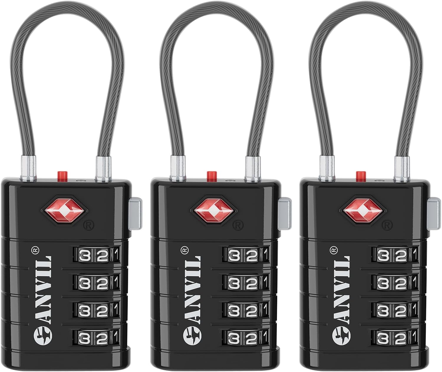 ANVIL 4 Digit Luggage Locks, TSA Locks for Luggage, Advanced TSA008 core, Alert Indicator for Your Travel Lock, Suitcase Lock. (3, Black)