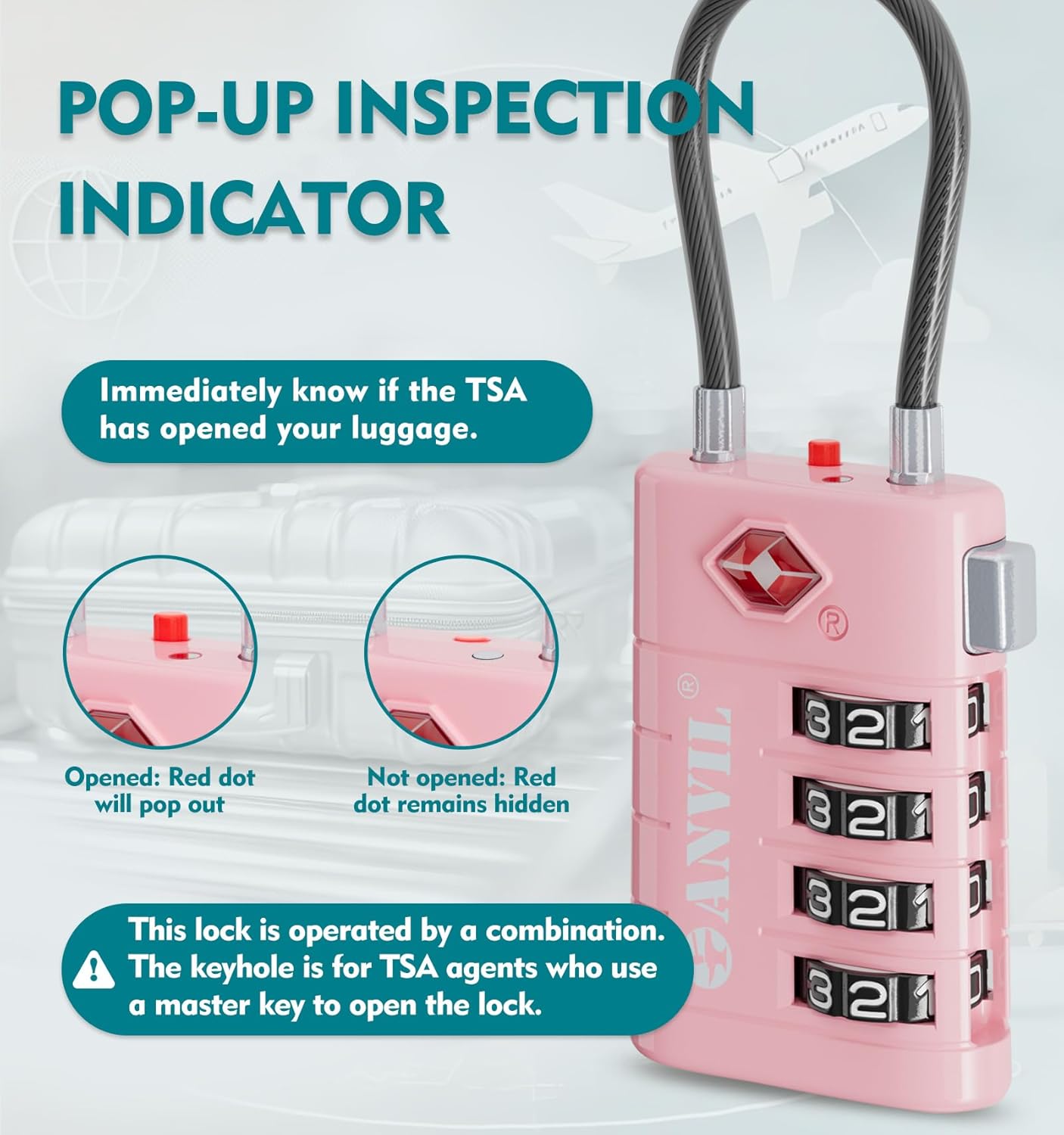 ANVIL 4 Digit Luggage Locks, TSA Locks for Luggage, Advanced TSA008 core, Alert Indicator for Your Travel Lock, Suitcase Lock. (3, Pink)