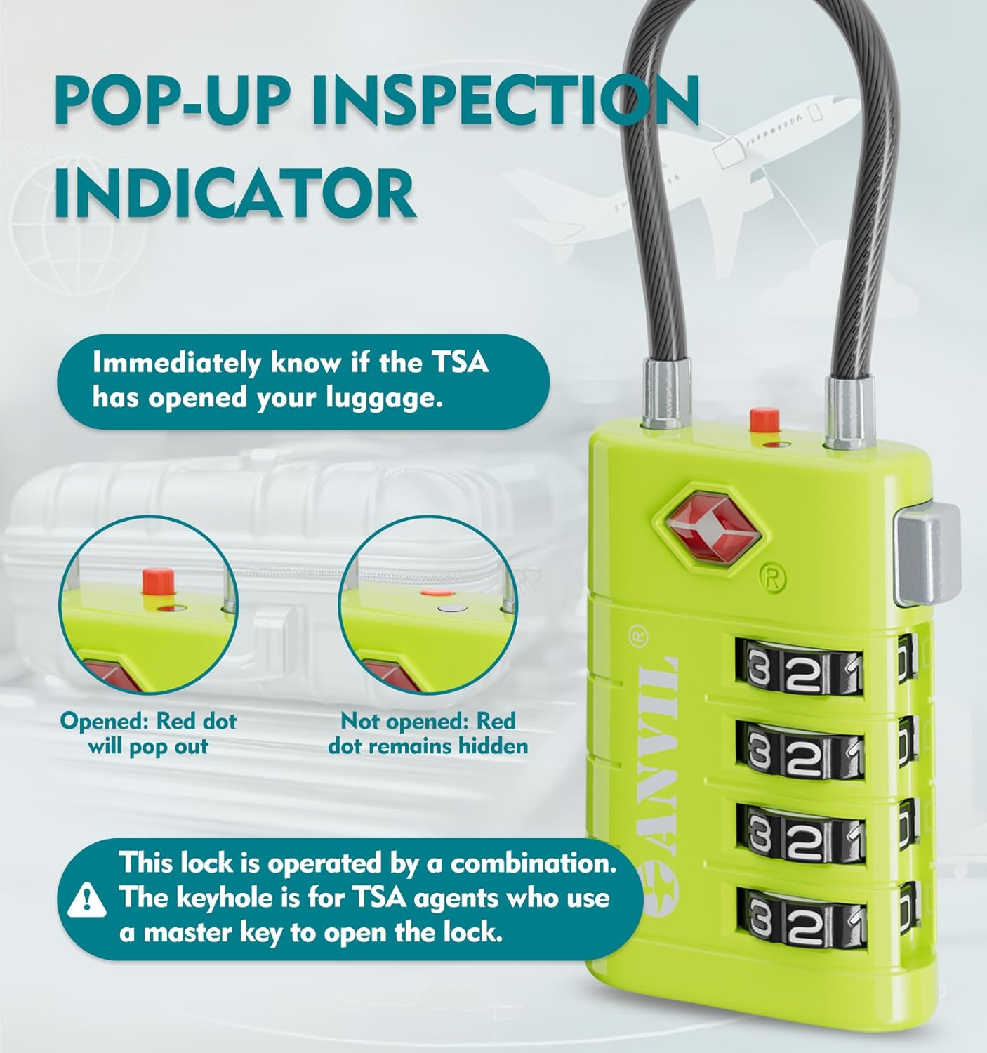- ★ Enhanced Security with TSA008 Core and Four-Digit Combination: The ANVIL Luggage Lock, one of the top TSA-approved locks for luggage, features the industry-leading TSA008 core. This advanced internal mechanism significantly prevents unauthorized access, making it a reliable choice among luggage locks.