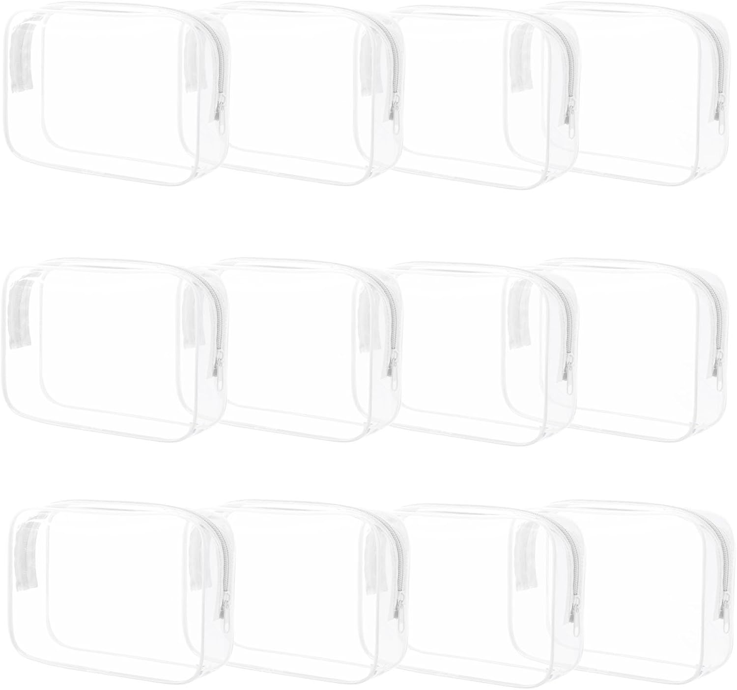 12 Pieces Clear Cosmetic Bag, PVC Waterproof Makeup Bags with Zipper, TSA Approved Toiletry Bag for Travel, Transparent Pouches Organizer Storage for Men and Women (White, Small)