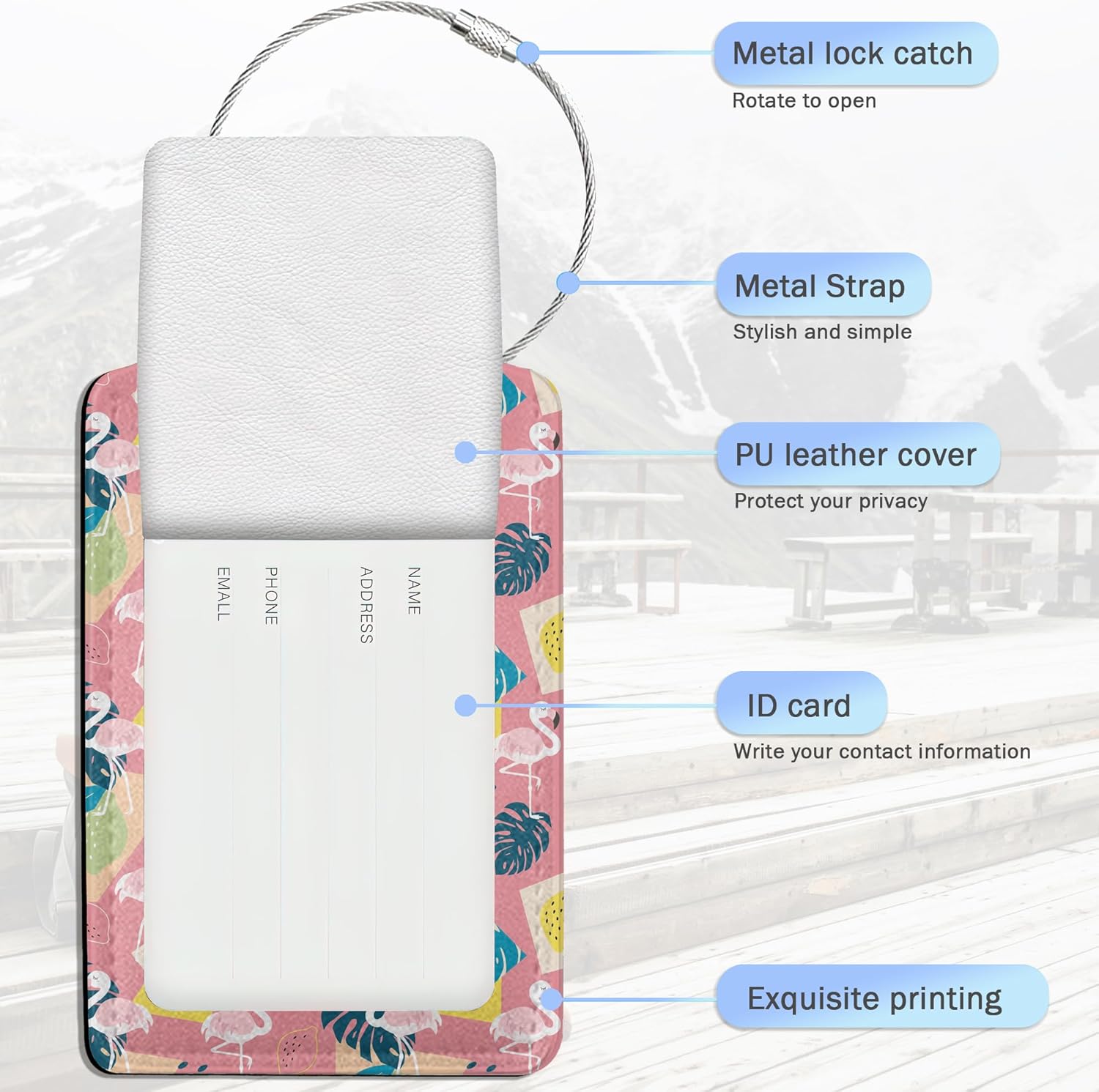 - Material Description:Crafted from PU leather,our pink flamingo luggage tags are soft and fray-resistant.Each tag is individually hand-stitched for long-lasting use without degumming.With a removable and durable steel loop,your suitcase tag will stay securely attached without risk of tearing