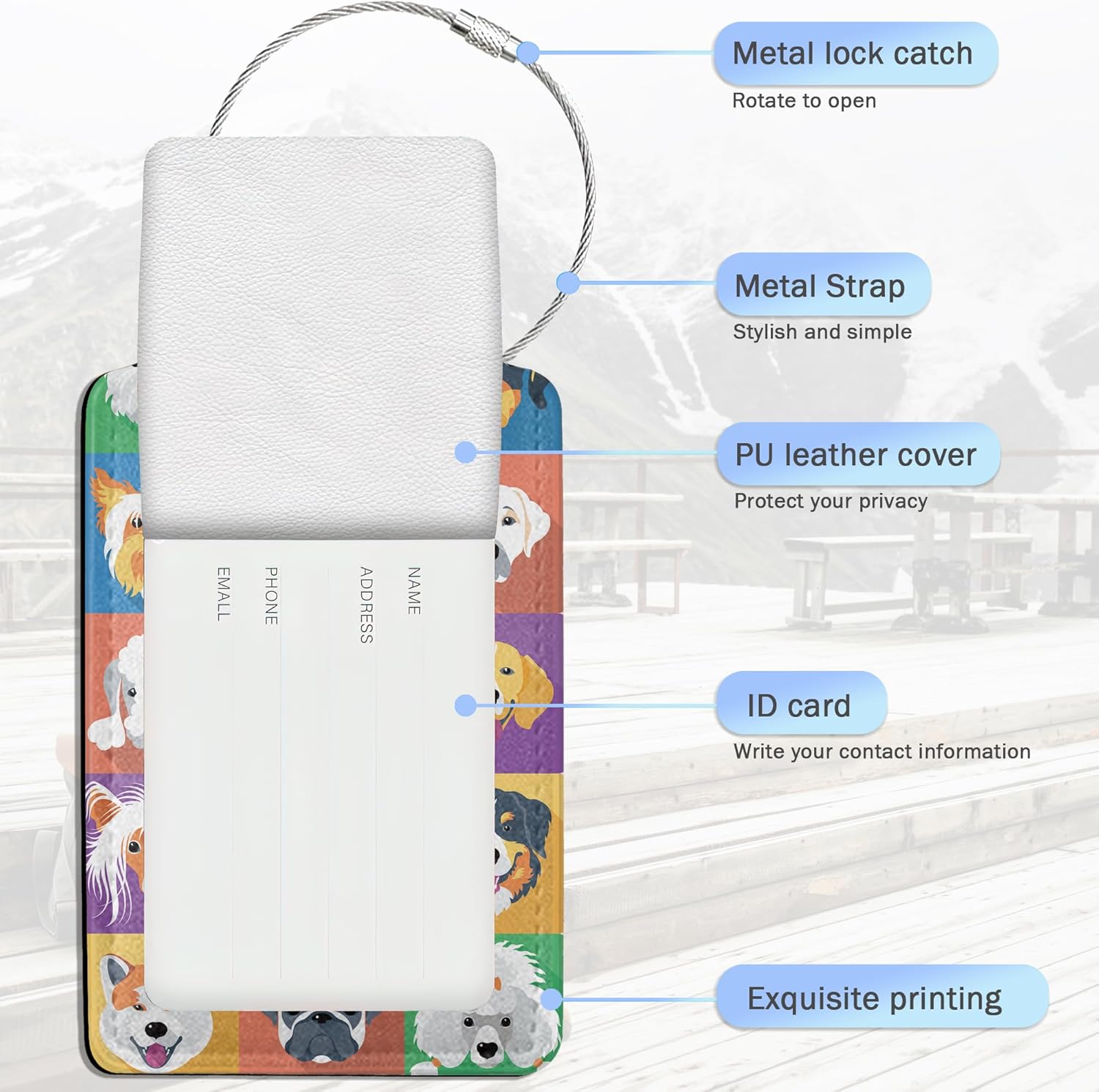 - Material Description:Crafted from PU leather,our dogs luggage tags are soft and fray-resistant.Each tag is individually hand-stitched for long-lasting use without degumming.With a removable and durable steel loop,your suitcase tag will stay securely attached without risk of tearing