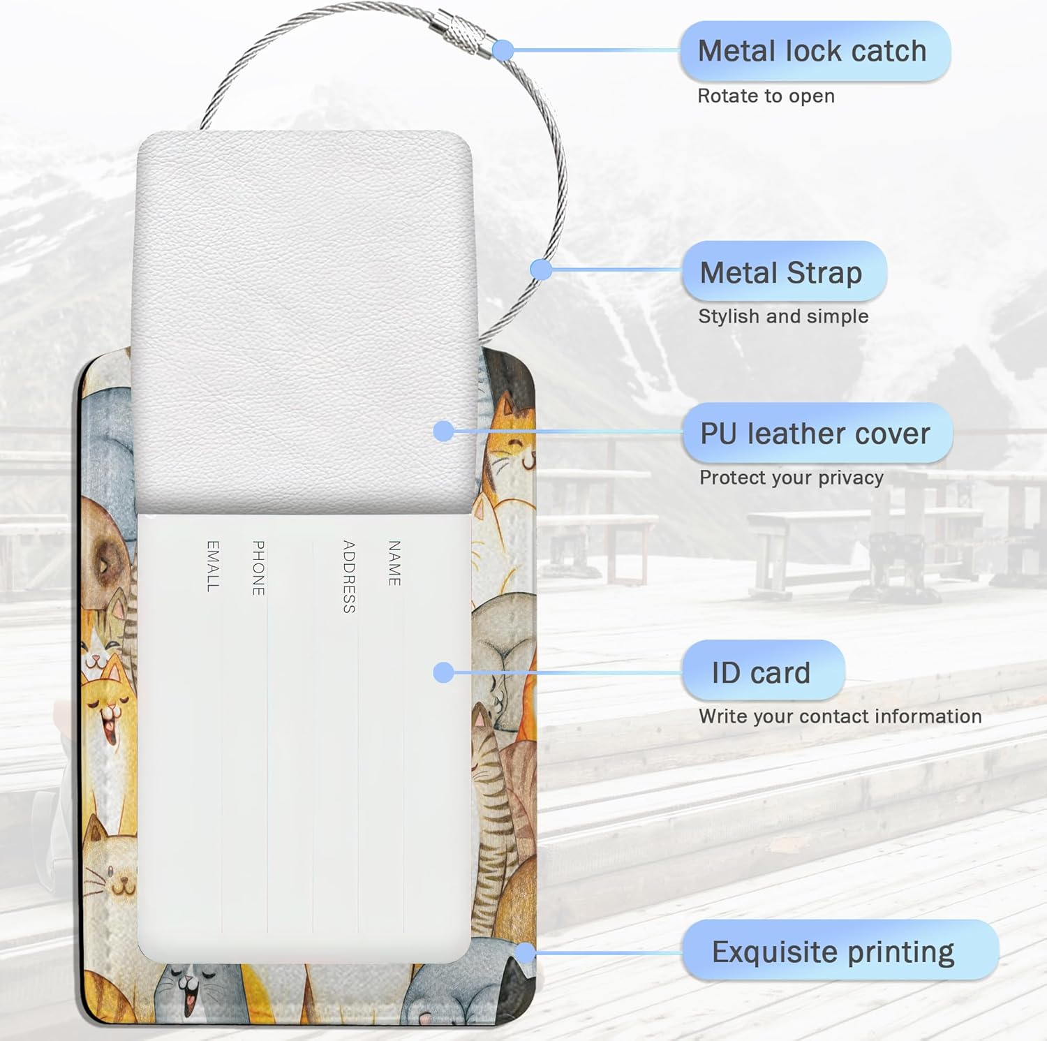 Cartoon Cats Luggage Tags,2 Pack Luggage Tag,Leather Privacy Cover ID Label with Stainless Steel Loop for Women Men Kids Girls Travel