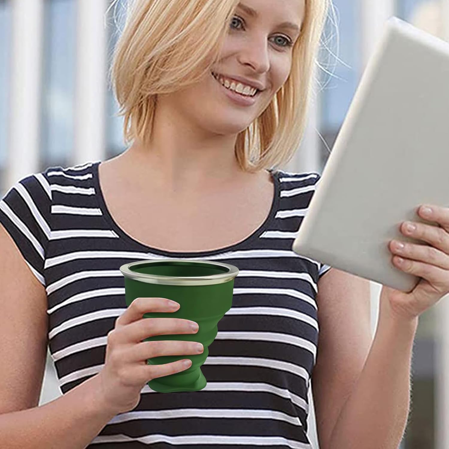 - 🥤【Premium Silicone Materials】 Our silicone collapsible travel cup is made of high quality durable silicone, stainless steel and plastic lid, which is flexible, reusable and pro-thin, strong texture, soft and smooth, not easy to rust, strong corrosion resistance. When the folding mug is used, it can effectively resistant to high temperatures, hinder your cup construction breaking, and provide better protection.