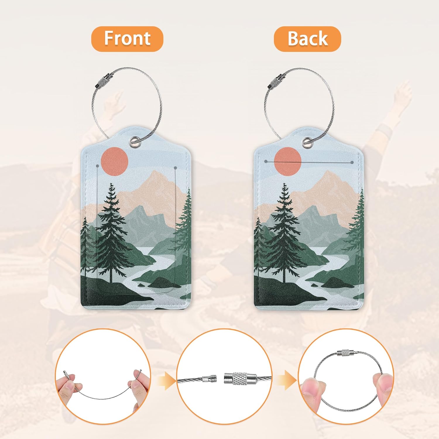 3 Pcs Luggage Tag for Suitcases,Mountain and Tree Sunset Landscape Leather Baggage Tags Identifiers for Travel,Privacy Protection Travel Bag Labels Suitcase Tags for Women Men