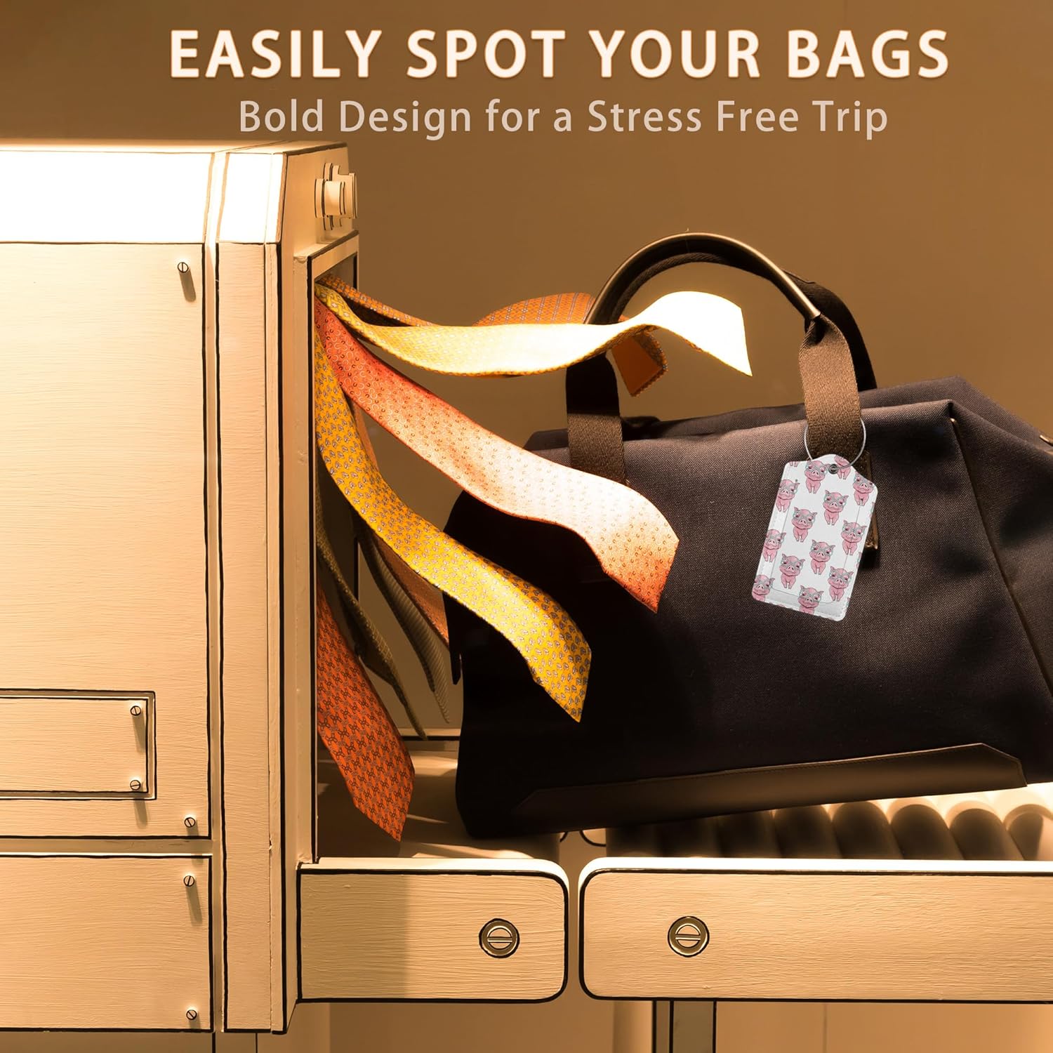 2 Pcs Luggage Tags for Suitcase,Cute Pig with Heart Luggage Tag Name Id Labels with Privacy Cover for Travel Backpack Women Men