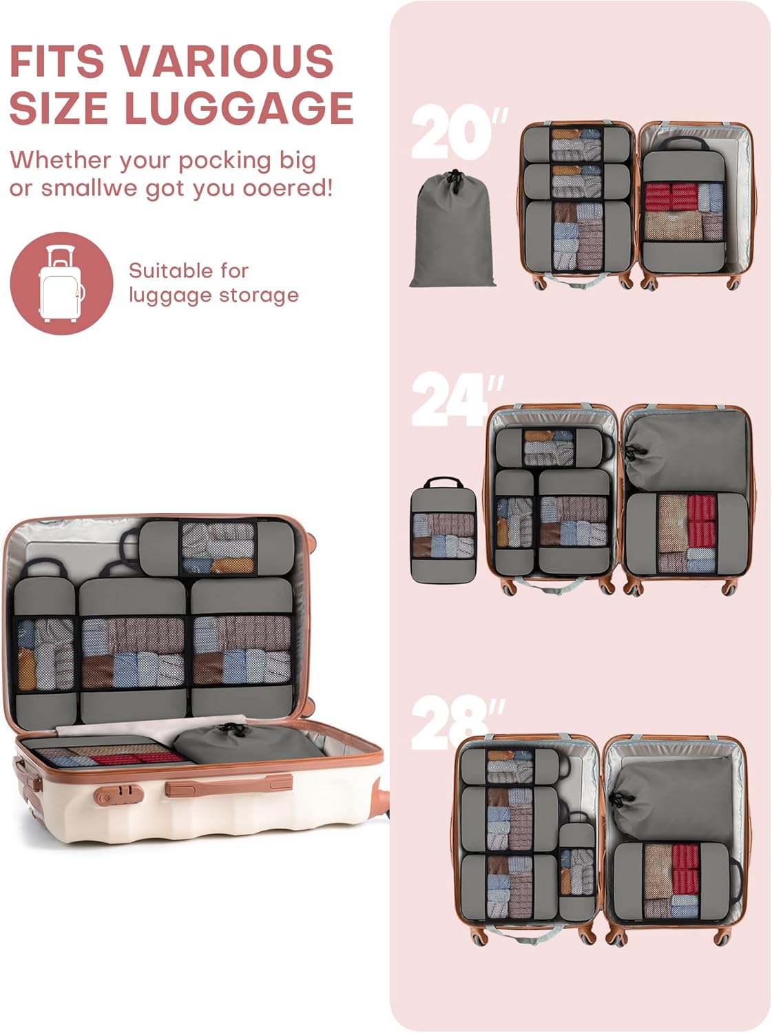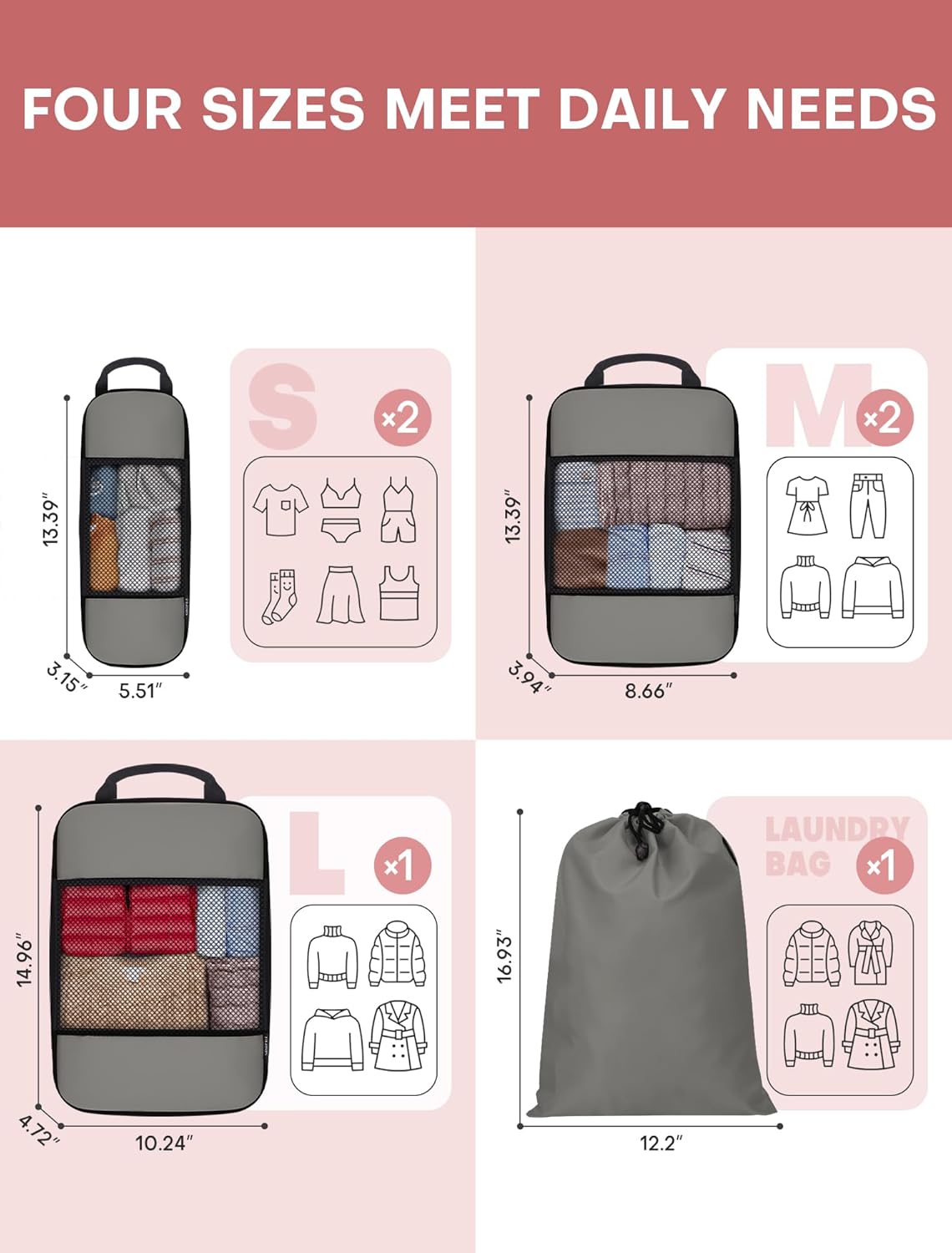 6 PCS Set Compression Packing Cubes for Travel, Lightweight Packing Organizer Bags Travel Essentials for Carry On, Suitcase, Home Closet - Grey