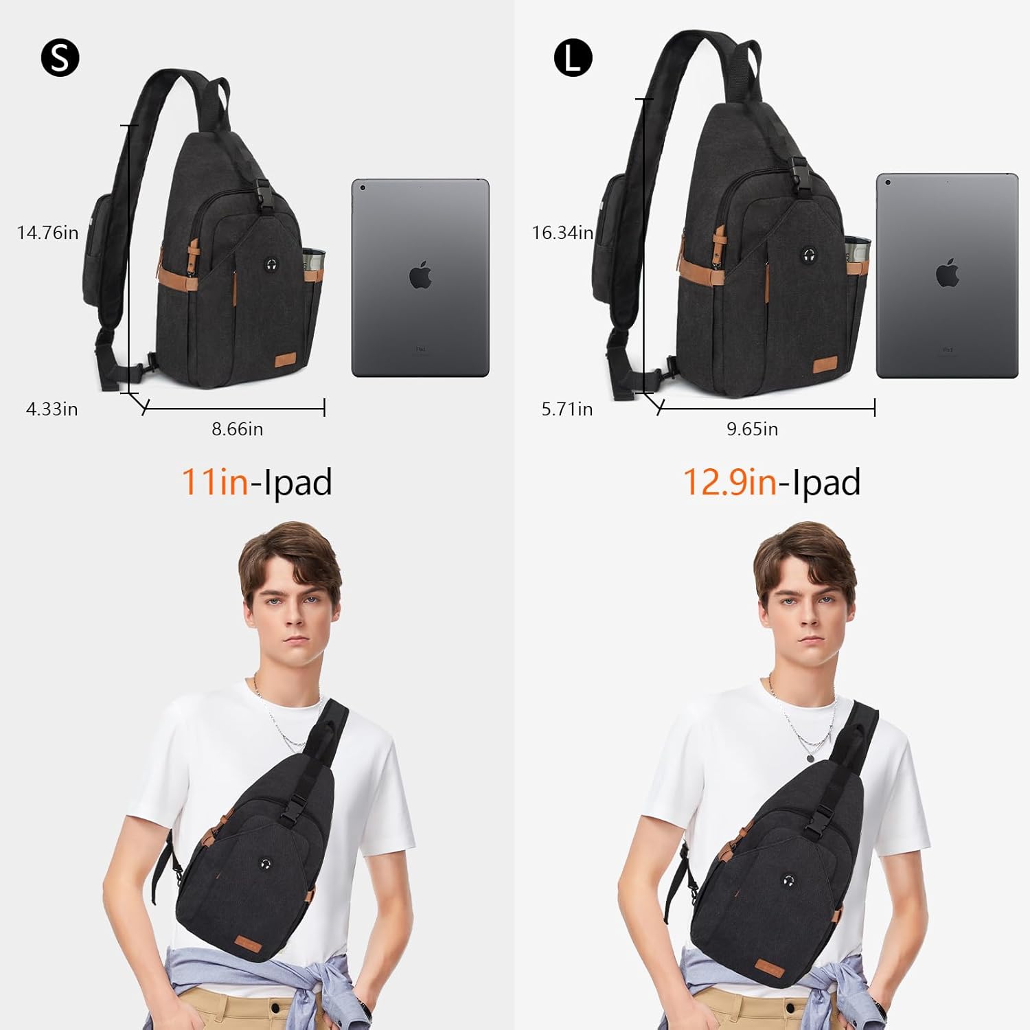 - 👍Perfect Size for OSOCE Sling Bag for Men: S-8.66*4.33*14.76in, fit 11-inch iPad; L-9.65*5.71*16.34in, fit 12.9-inch iPad.Crafted from high-density, water-resistant and tear-resistant canvas with stylish brown leather accents, this crossbody bag men combines durability with a fashionable look.The key feature of this anti theft crossbody bag for men is the Tunnel Lock exterior zipper, which enhances security during travel and helps prevent theft, ensuring you're not an easy target.