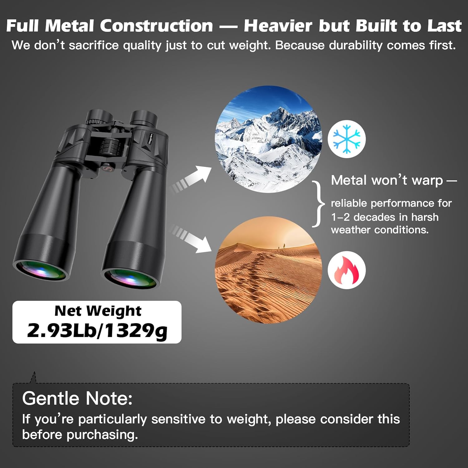 - WEIGHT REMINDER---The binoculars for adults high powered design requires a metal barrel to ensure stability, and it is recommended to use a tripod (not portable). Additional purchase: B0D9TK1D64.