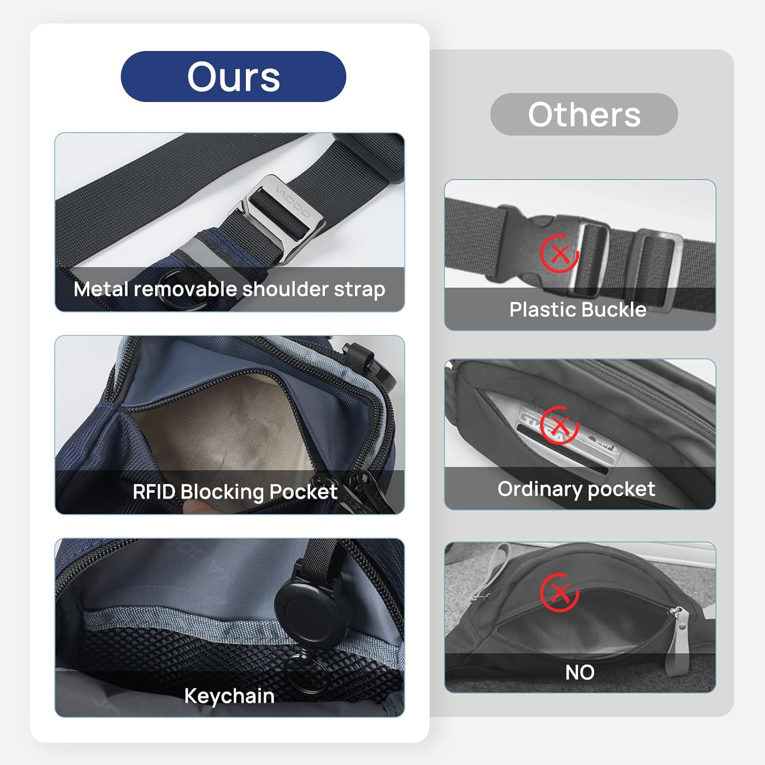 VADOO Mini Sling Bag for Men Women, Small Crossbody Bag with RFID Blocking & Waterproof, Lightweight Phone Chest Bag for Travel Gym (Basic Version- Blue)