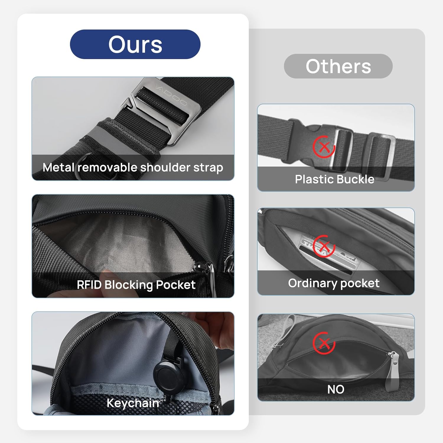 - 【Versatile Use】- Suitable for both men and women, this sling bag excels in running, travel, hiking, cycling, and gym training. It also makes a thoughtful gift for loved ones on special occasions (Valentine's Day, Mother's Day, Father's Day, anniversaries, and birthdays). The VADOO Sling Bag offers unbeatable value, including a 1-year hassle-free replacement service—ensuring peace of mind with every carry