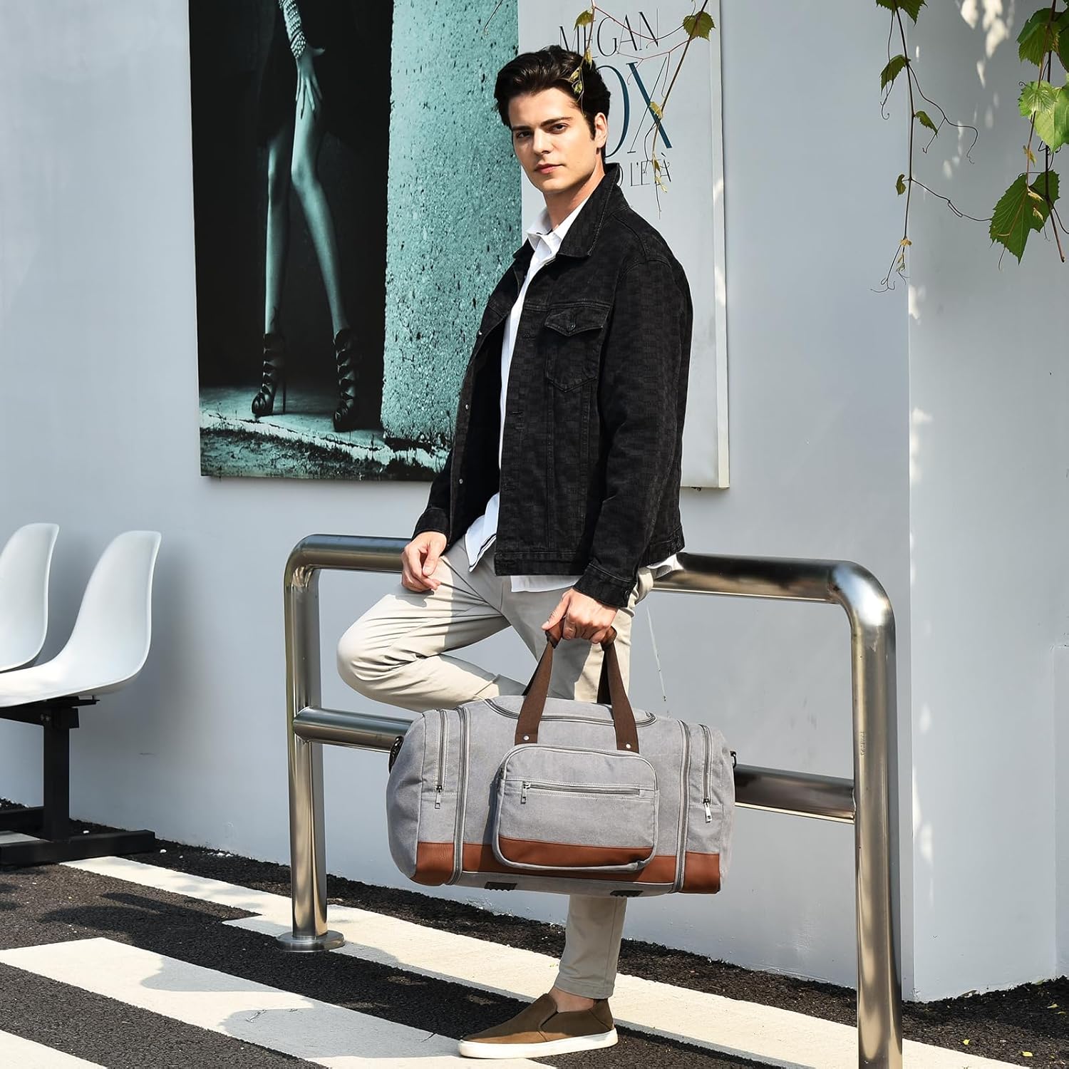 - Durable & Heavy-Duty – Built to Last.Crafted from premium 16oz canvas, this large duffle bag for men offers exceptional durability and reliability. Reinforced with sturdy metal hardware, it can withstand weights of up to 35kg, making it the perfect choice for rugged travel. Whether for daily use or weekend trips, this overnight bags for men is designed to handle it all.