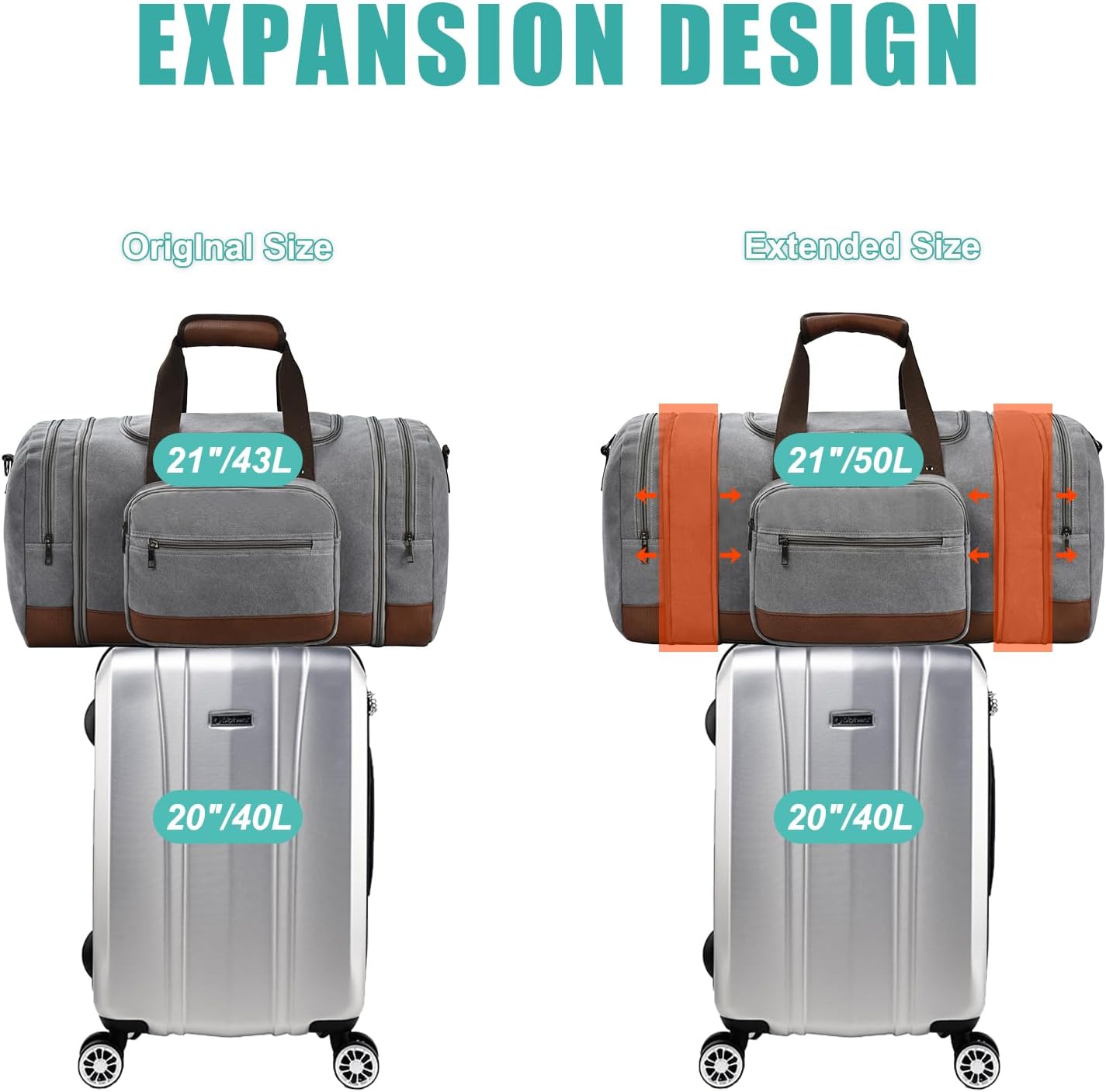 - Expandable Design – Adjustable Capacity for Any Trip.This weekender bag mens features a unique expandable design, allowing you to increase the capacity from 43L to 50L by simply unzipping the expansion section. Whether for short getaways or longer journeys, this mens overnight bag adapts to your travel needs with ease.