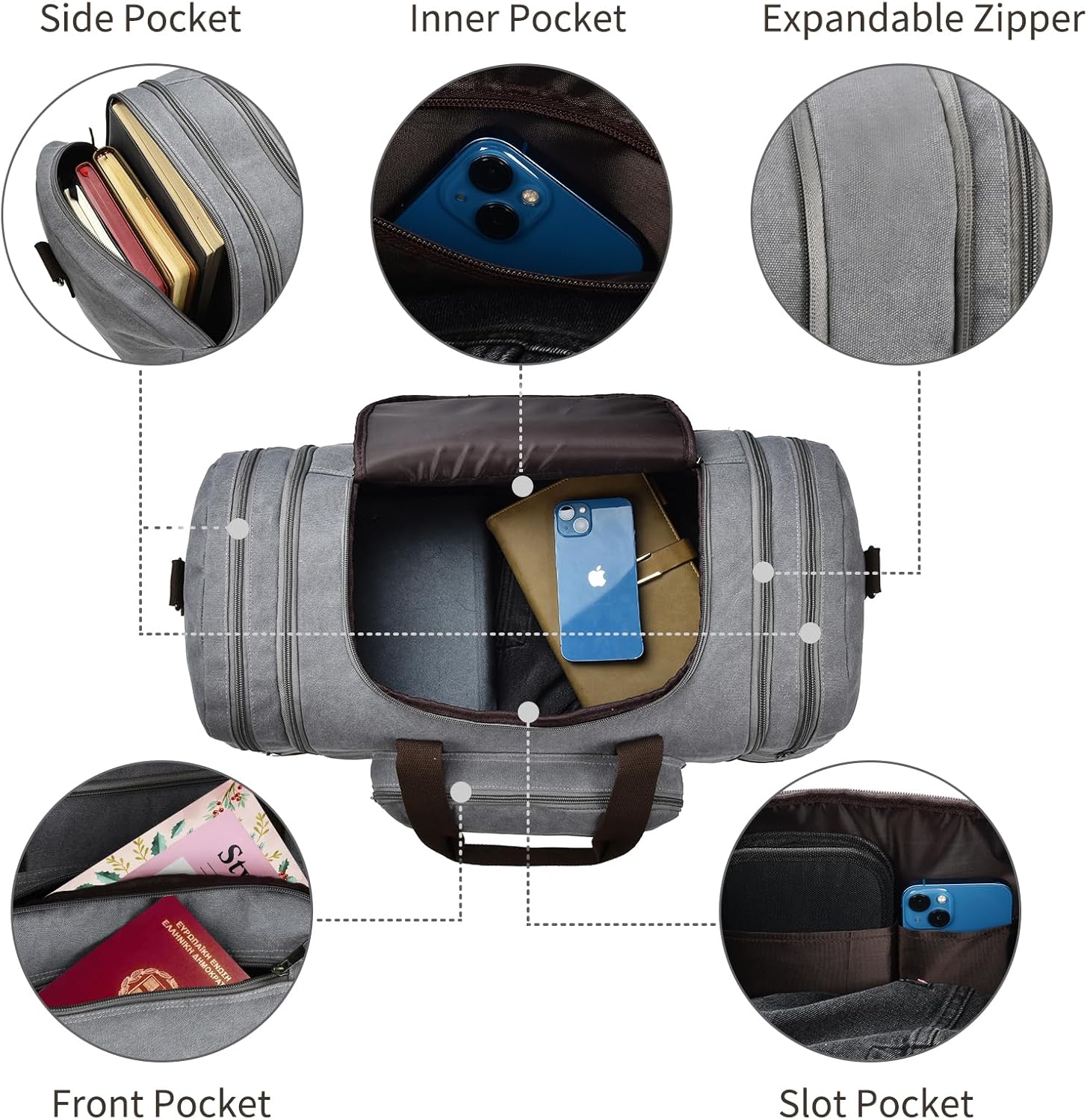 - Durable & Heavy-Duty – Built to Last.Crafted from premium 16oz canvas, this large duffle bag for men offers exceptional durability and reliability. Reinforced with sturdy metal hardware, it can withstand weights of up to 35kg, making it the perfect choice for rugged travel. Whether for daily use or weekend trips, this overnight bags for men is designed to handle it all.