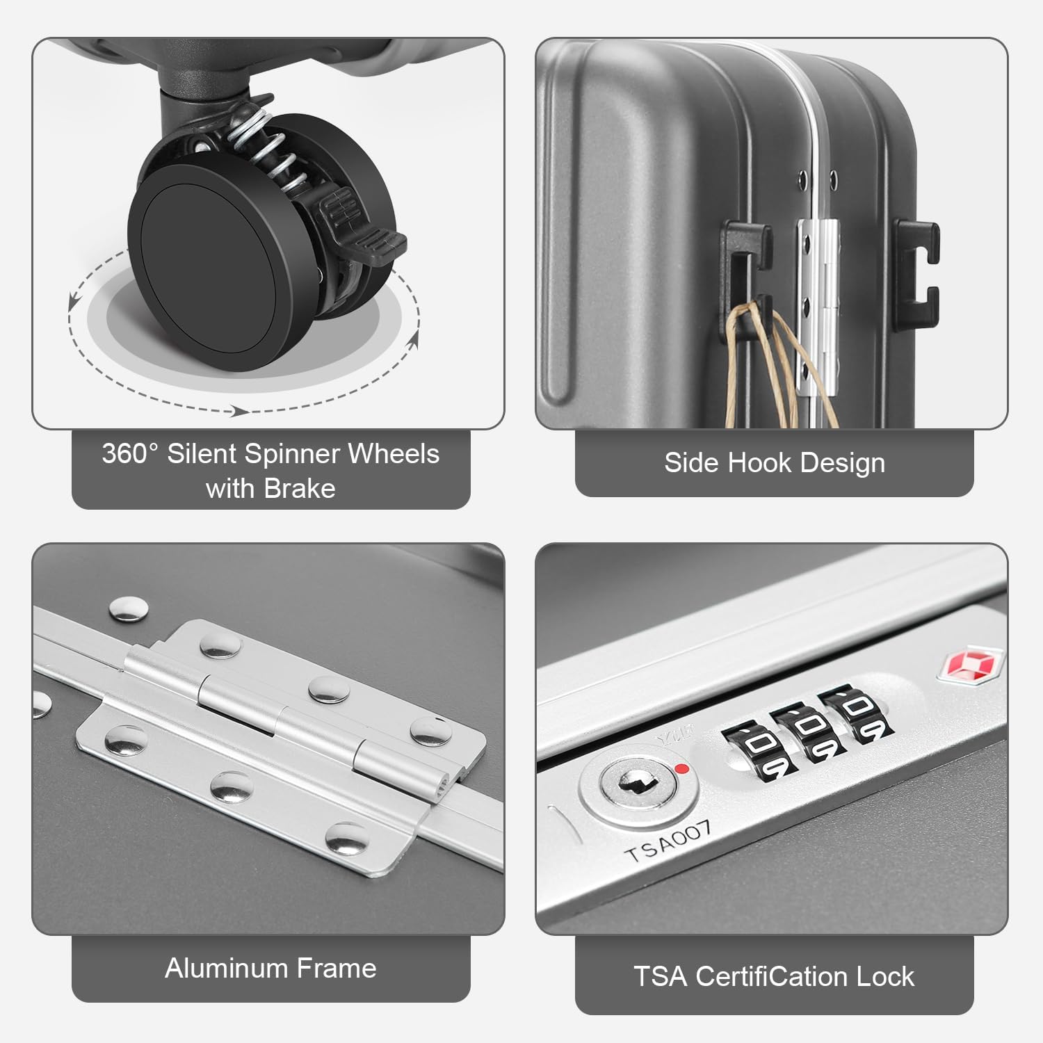 - 【Superior Quality】Made of high quality PC material hard shell and aluminum frame,light and abrasion resistant.The no zipper design makes it more convenient to open and close.The TSA customs lock can ensure the security of the items in the suitcase.𝐘𝐨𝐮 𝐜𝐚𝐧 𝐨𝐩𝐞𝐧 𝐭𝐡𝐞 𝐬𝐮𝐢𝐭𝐜𝐚𝐬𝐞 𝐝𝐢𝐫𝐞𝐜𝐭𝐥𝐲 𝐰𝐢𝐭𝐡 𝐭𝐡𝐞 𝐩𝐚𝐬𝐬𝐰𝐨𝐫𝐝 𝐚𝐧𝐝 𝐧𝐨 𝐤𝐞𝐲 𝐢𝐬 𝐧𝐞𝐞𝐝𝐞𝐝.