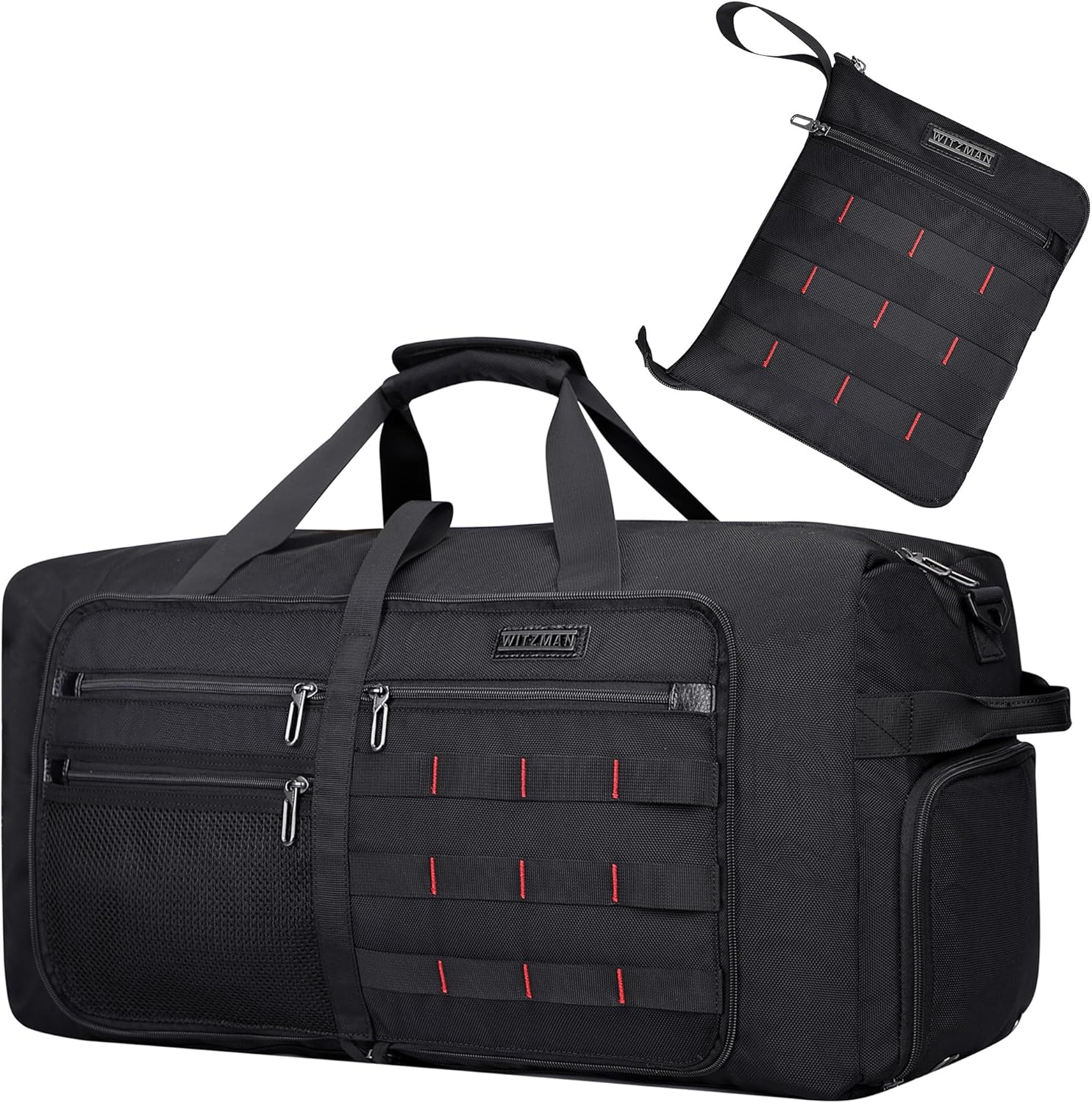 WITZMAN Foldable Duffle Bag for Travel 65L Lightweight Packable Duffel Bag with Shoes Compartment Overnight Bag for Men Women (B697 Black)